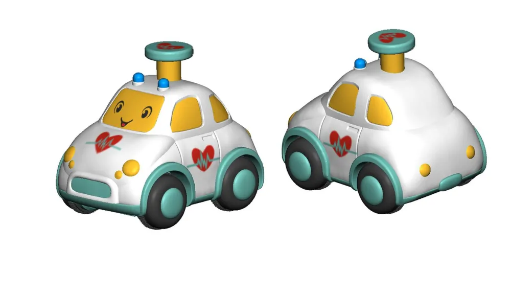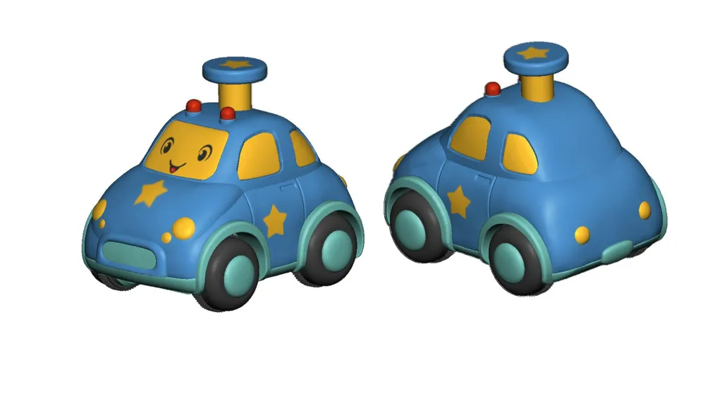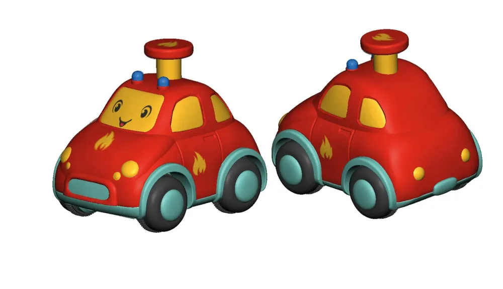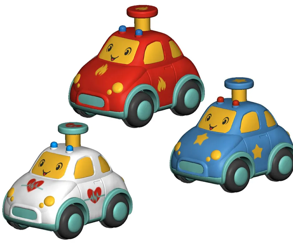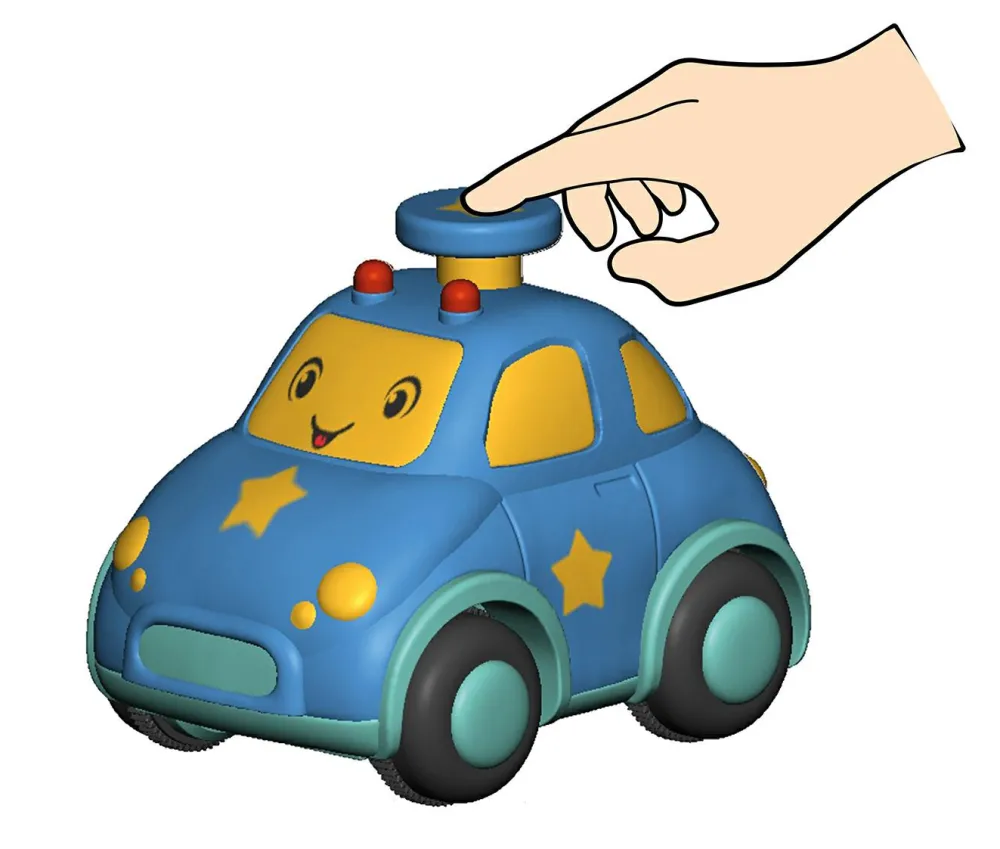 Klassisk, sød lille bil, som kører fremad, når dit barn trykker på knappen på taget.