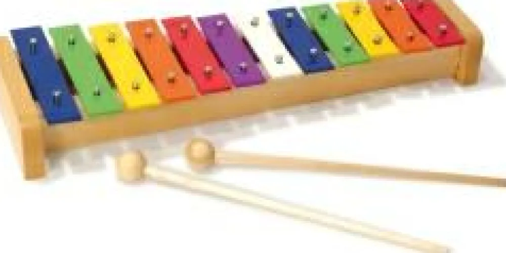 Denne xylofon i metal, kommer så tæt på rigtige toner, som man kan, når nu det også er et legetøj. Alle toner er farve indikeret, så man evt. kan lære sig melodier i farver.