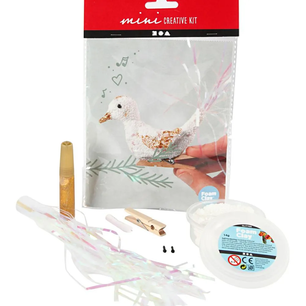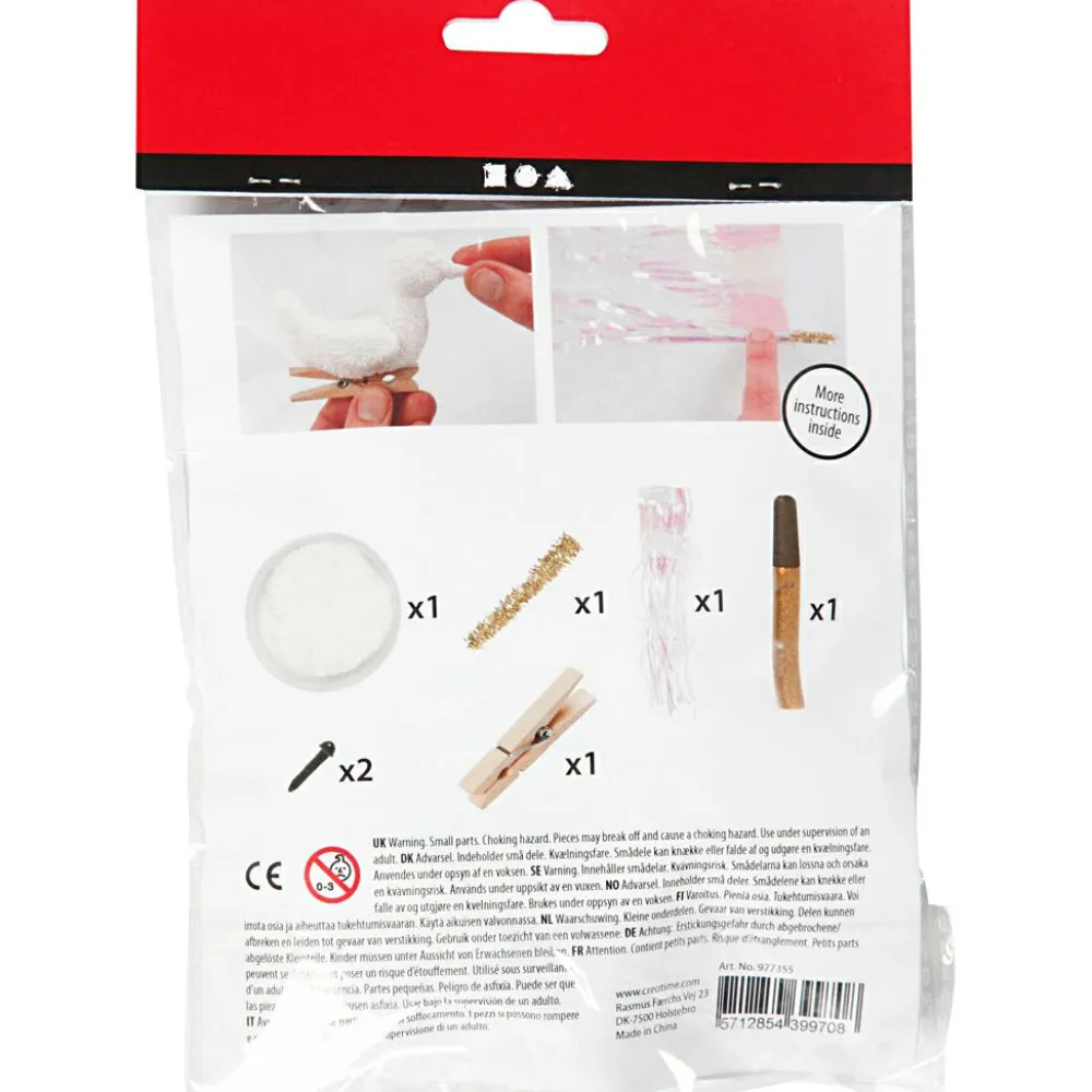 Med dette krea-sæt kan dit barn lave en mægtig fin lille fugl, som kan sættes fast på jeres juletræ. Med i sættet er der både fjer og guldglimmer, som altid er gode materialer til fremstilling af pynt.