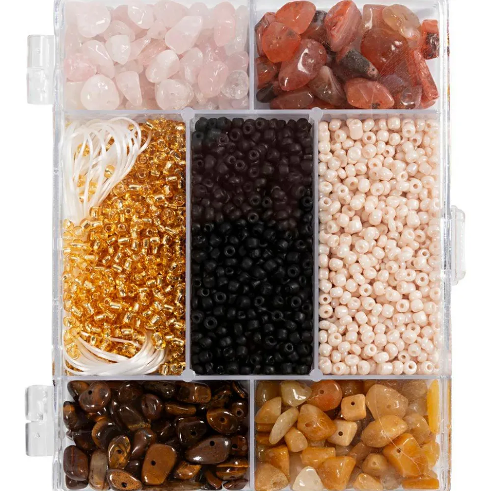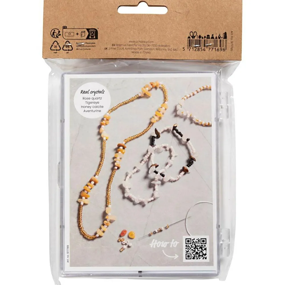 Sættet her er en blanding af krystalsten og rocaiperler (over 2500 i alt) og der følger elastiksnor og perlenål med.