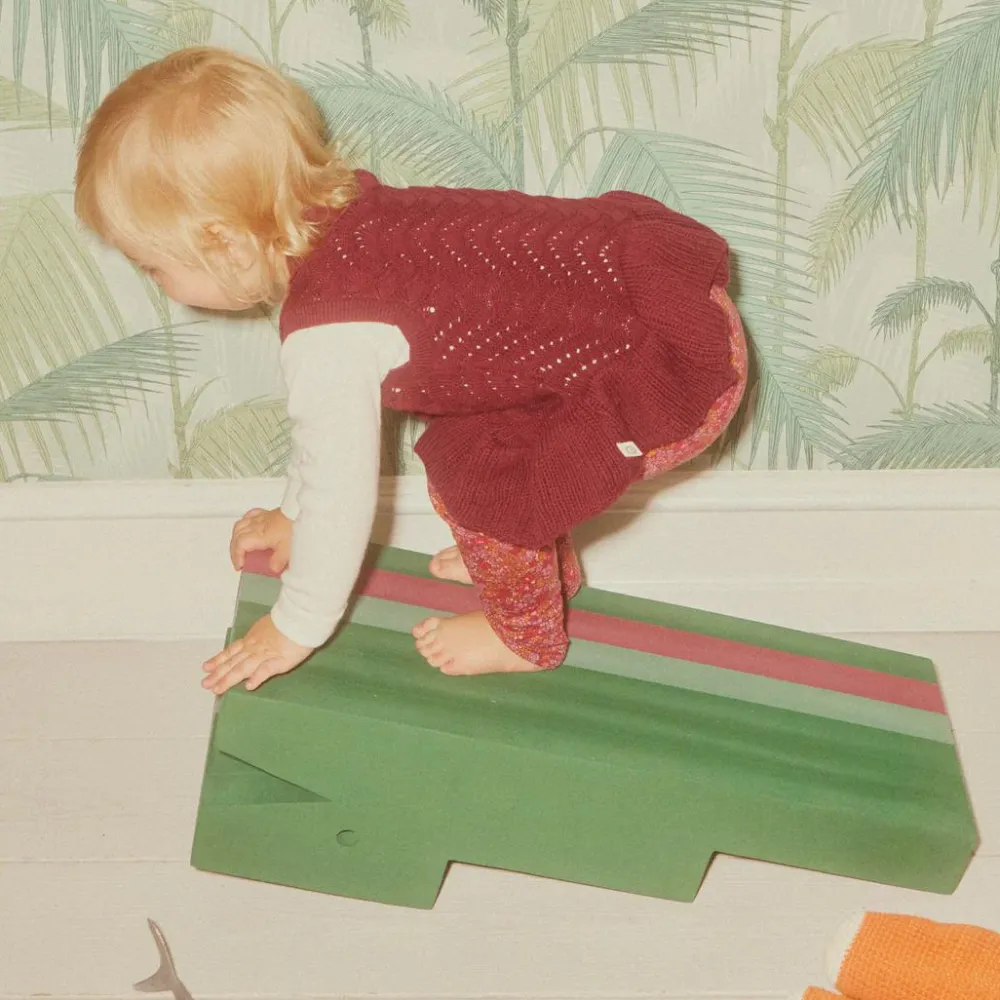 Lad dit barn bruge sin nye bObles krokodille i stor størrelse som trappe, som glidebane (når den vendes om) eller som balancebom (når den står på siden).