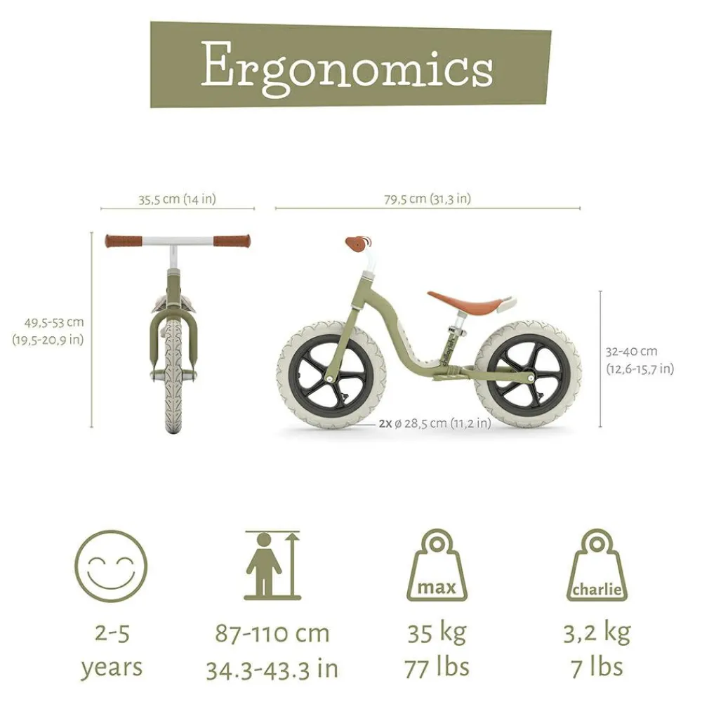 Flot løbecykel i aluminium med lækre detaljer som fx håndtaget bag på sadlen, så du kan bære løbecyklen, når dit barn pludselig ikke gider trille mere, selvom I er 300 meter fra børnehaven. Og indbygget fodstøtte, så dit barn kan sætte fødderne op, når der er kommet fart på og lige skal trilles et stykke eller når dit barn triller ned af bakke.