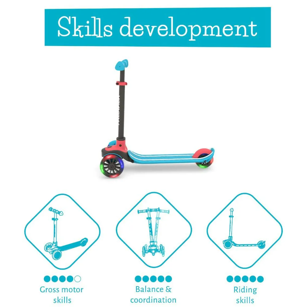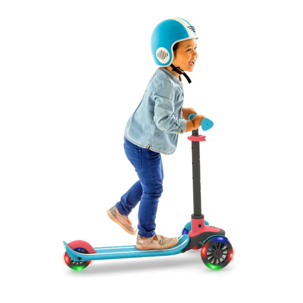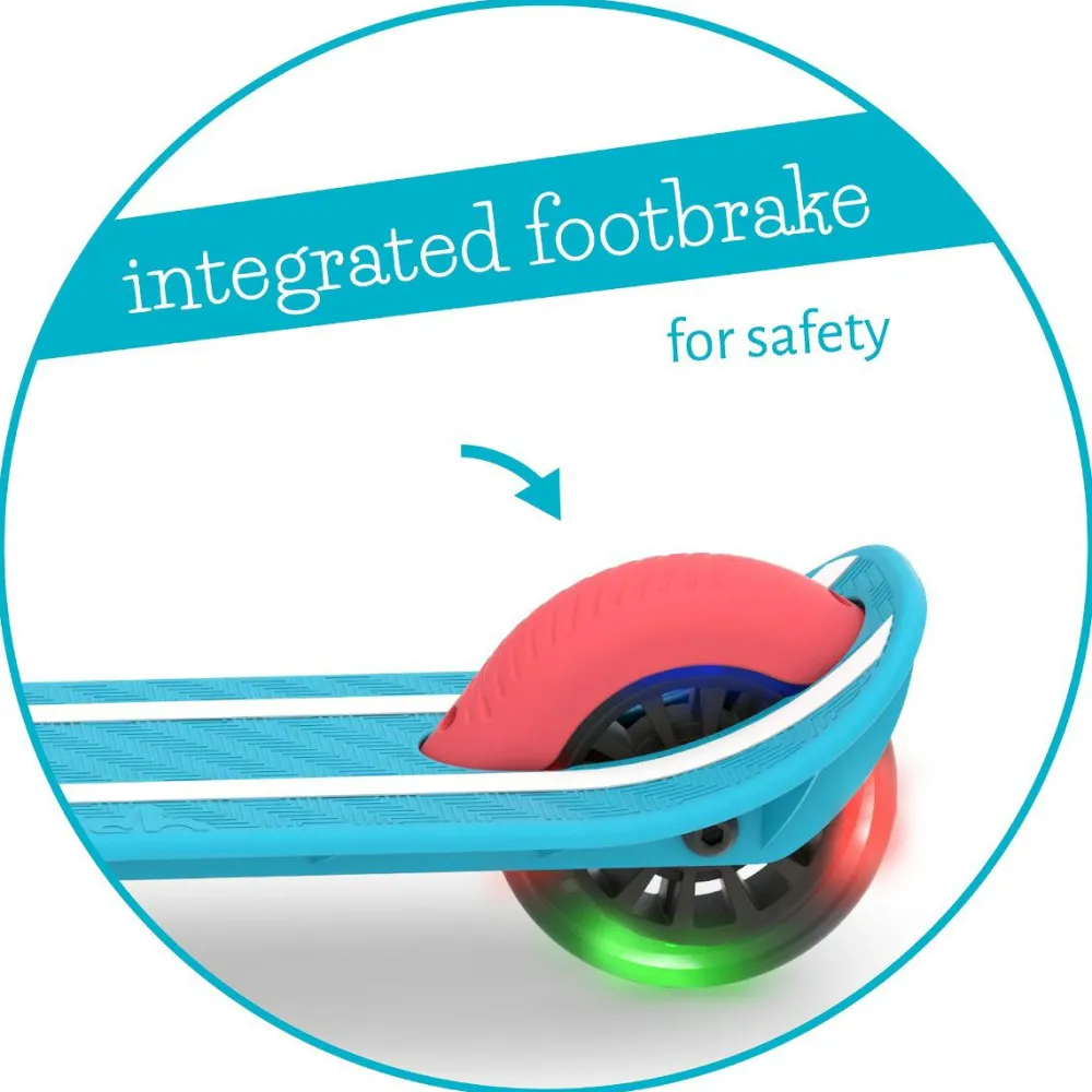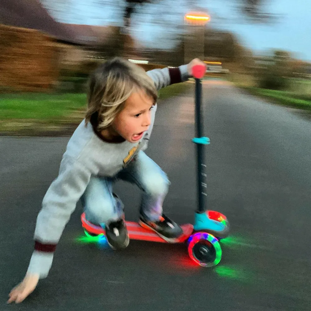 LED-lysene i hjulene bruger ikke batteri og gør løbehjulet sjovt at bruge også i vintermørke.
