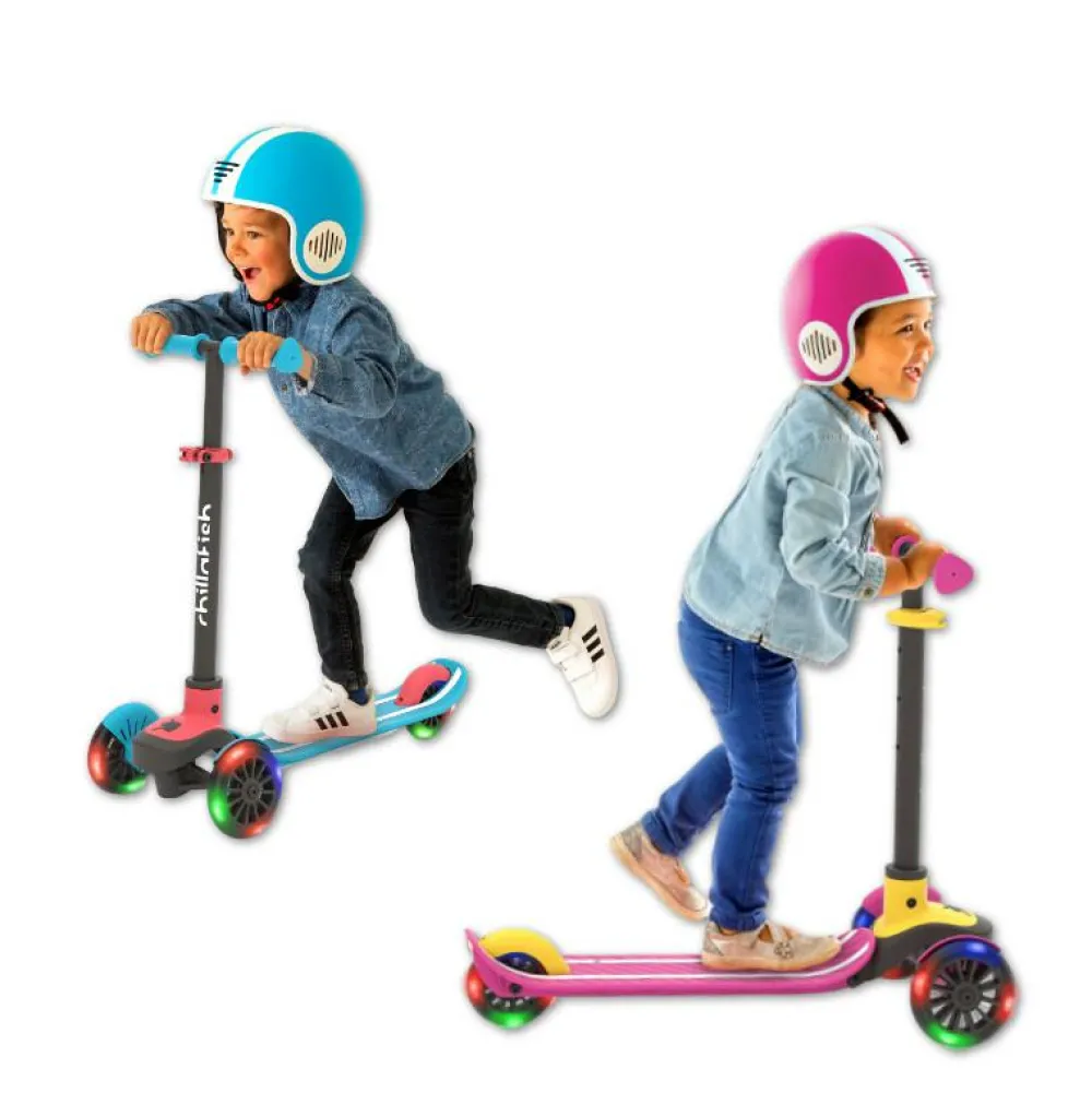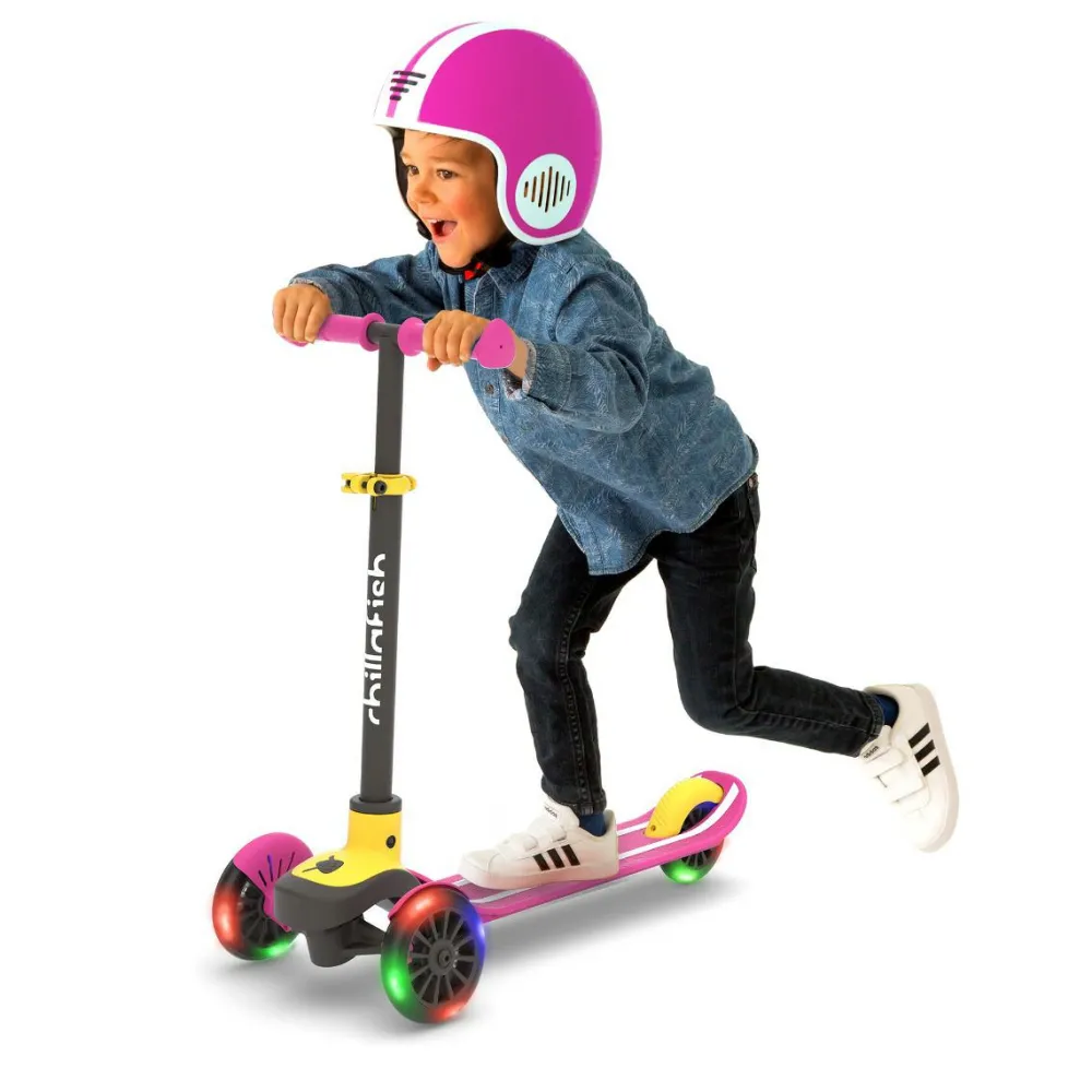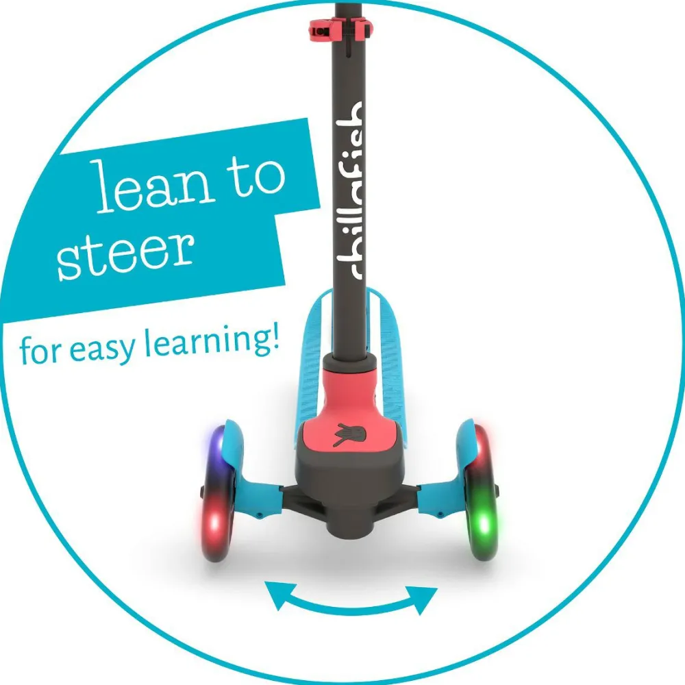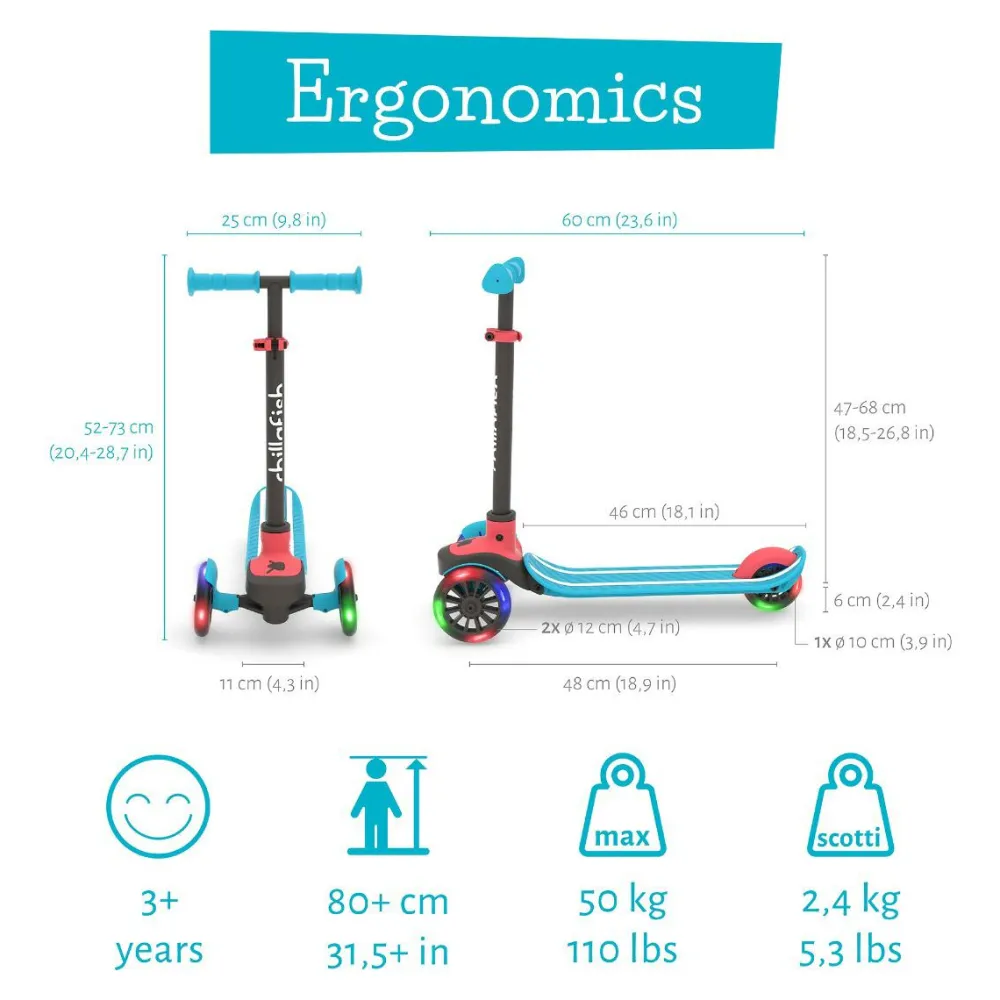 LED-lysene i hjulene bruger ikke batteri og gør løbehjulet sjovt at bruge også i vintermørke.
