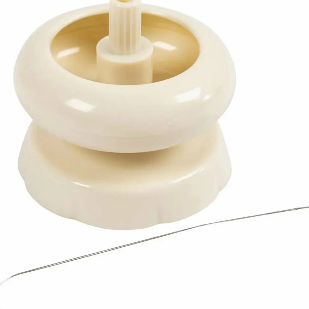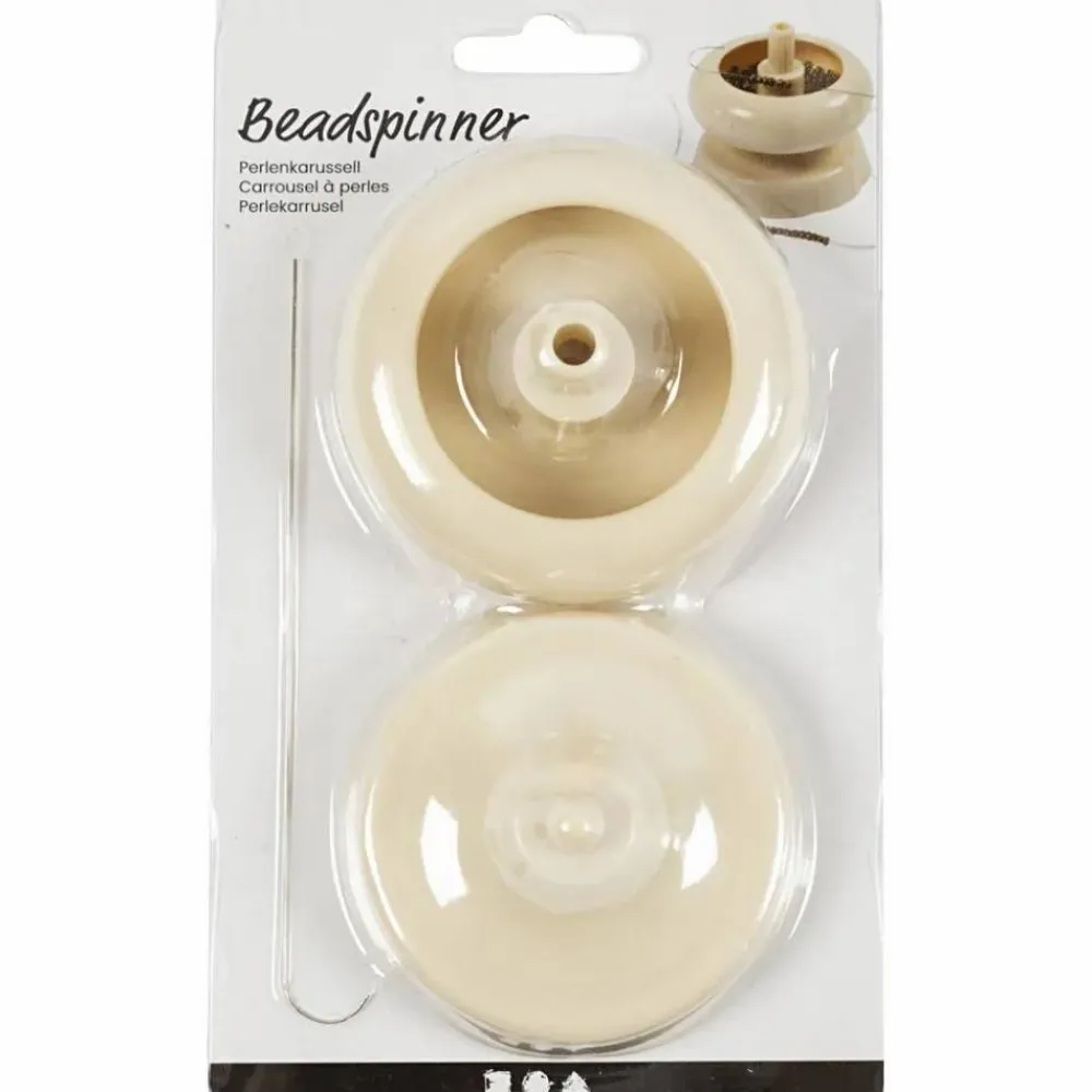 Hold nålen, så den peger mod den retning, karrusellen drejes, så perlerne hvirvler mod nålen. Så drejer du karrusellen med den anden hånd.