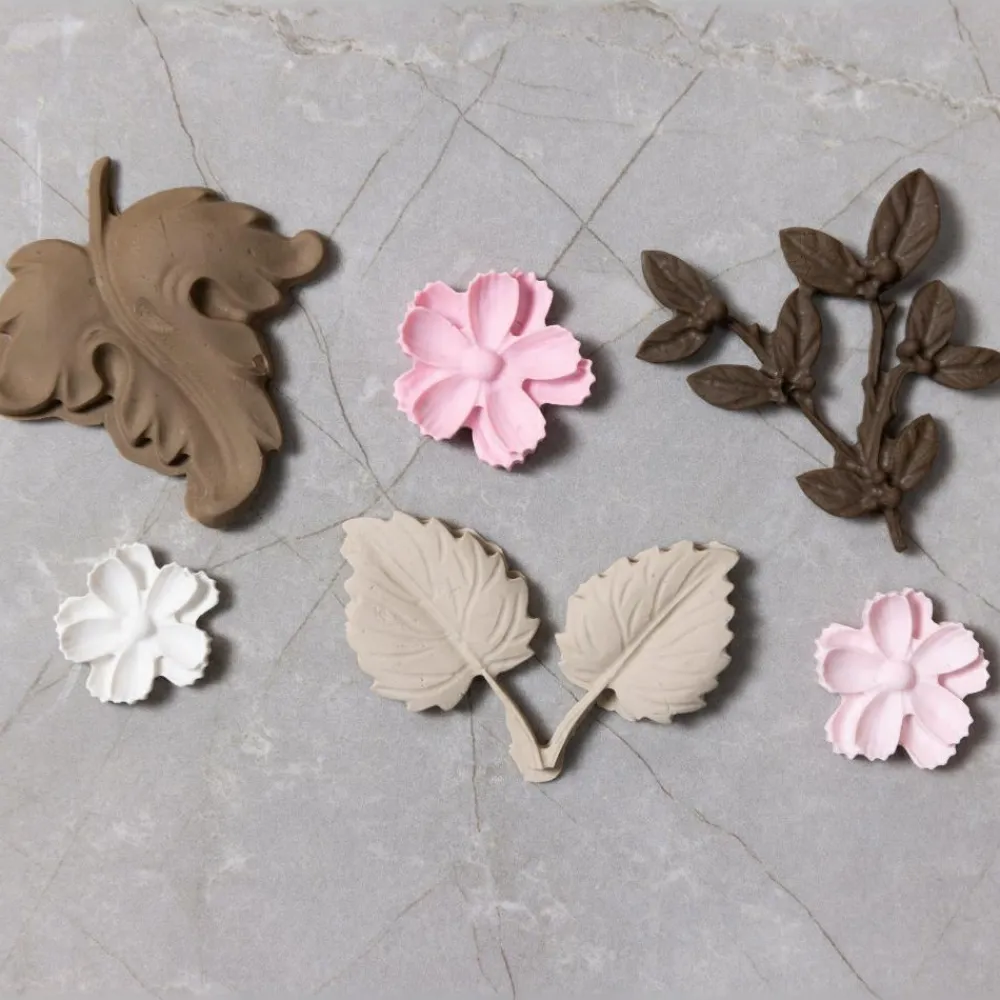 Støb stearinlys, støb roserne i resin, gips eller sæbe eller hæld smykkeler i formene og lav smykker med blomster og blade. Du kan også bruge Silk Clay® der hærder ved stuetemperatur.
