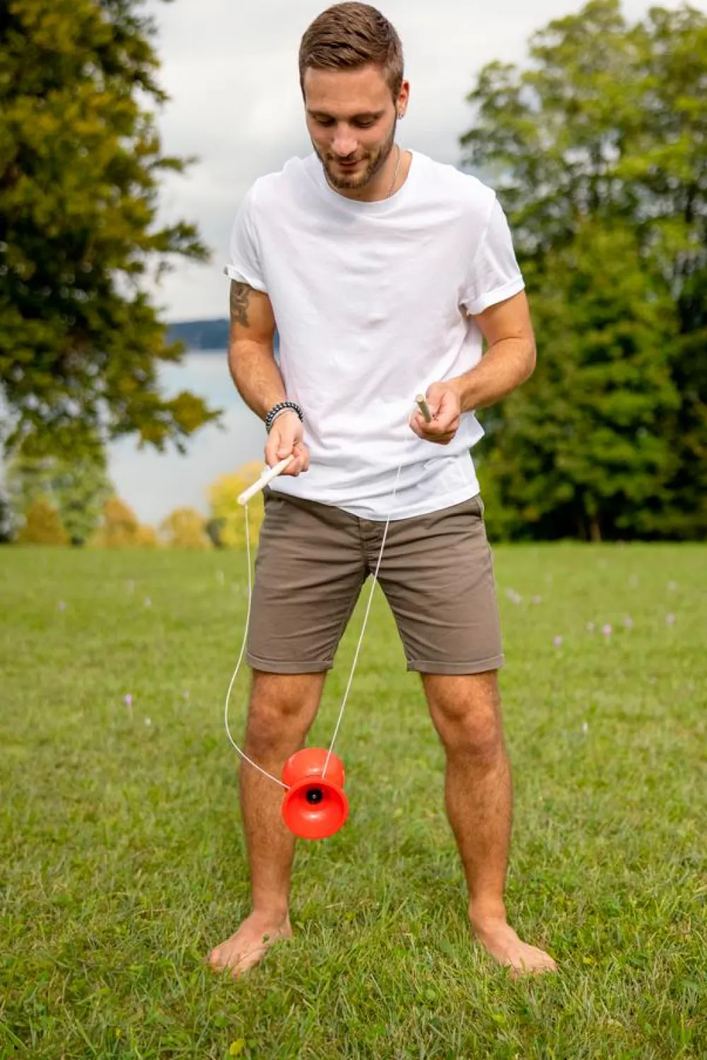 En diabolo er en klassisk form for gøglerrekvisit, der kan tages frem i alle mulige sammenhænge.