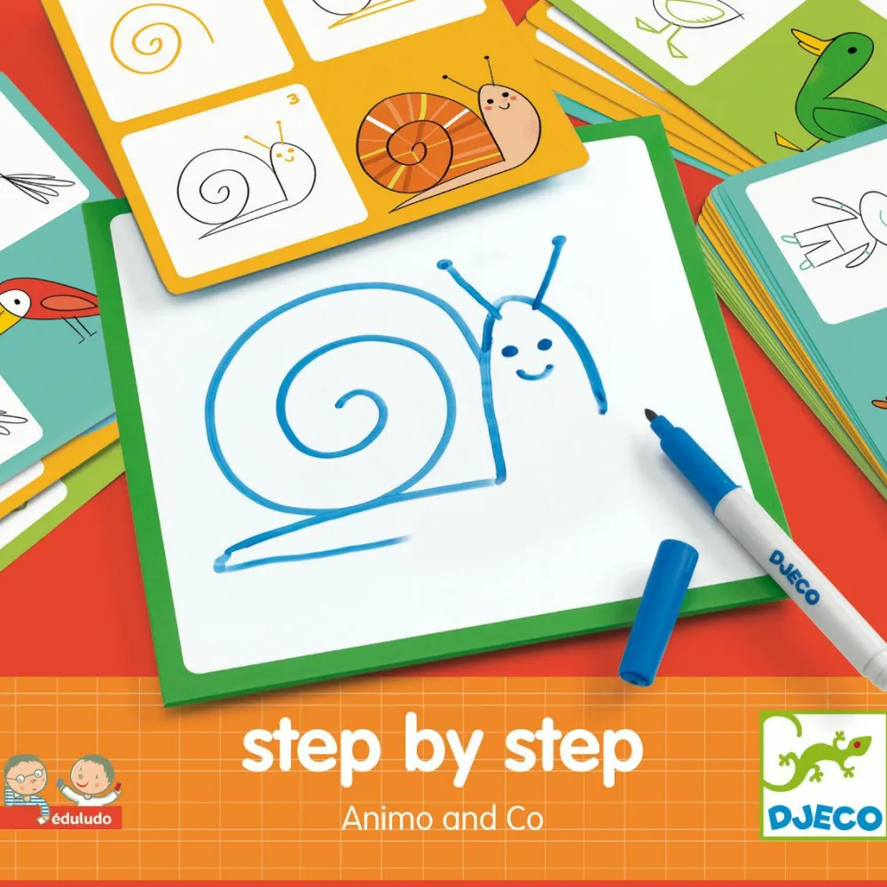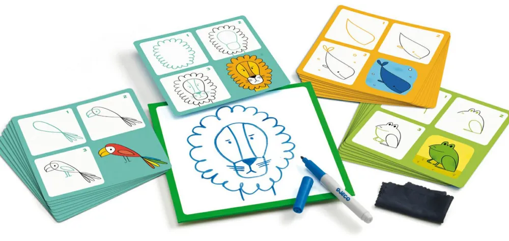 I denne solide æske finder I 24 kort med nemme trin-for-trin vejledninger til, hvordan I med meget få streger og virkemidler kan tegne forskellige dyr. Kortene er inddelt i 3 forskellige sværhedsgrader.