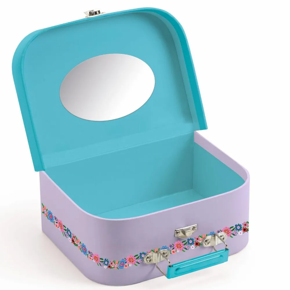 Den fine papkuffert indeholder en masse tilbehør af træ og andre materialer: