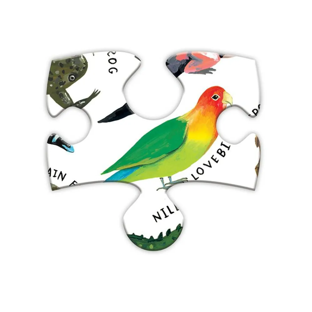 Puslespil med 100 brikker med forskellige dyr i verden.