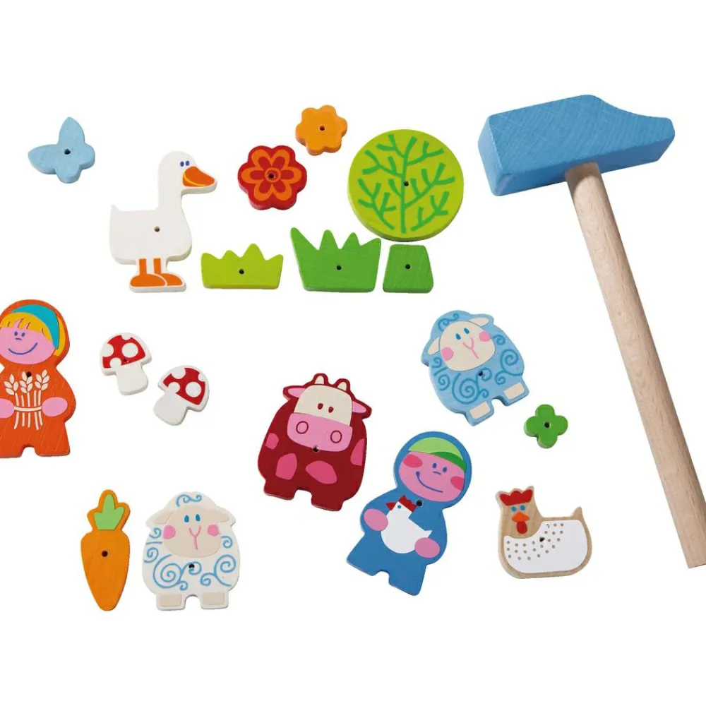 Hammer og søm kan være så kreativt at lege med, at du tror, at det er løgn. I kan lave alle mulige søde scenarier med dette søde sæt fra Haba, og I kan gøre det igen og igen, for kvaliteten er bare helt i top.