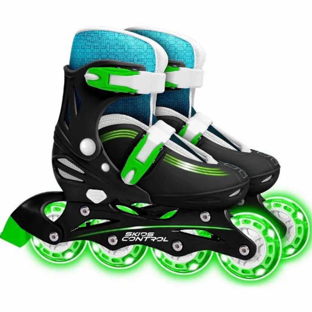Støvlerne kan justeres, så de passer fra str 30 til str 33. Rulleskøjterne er inliners. Det vil sige, at hjulene sidder på en række i stedet for de gammeldags rulleskøjter, hvor hjulene sidder to og to.