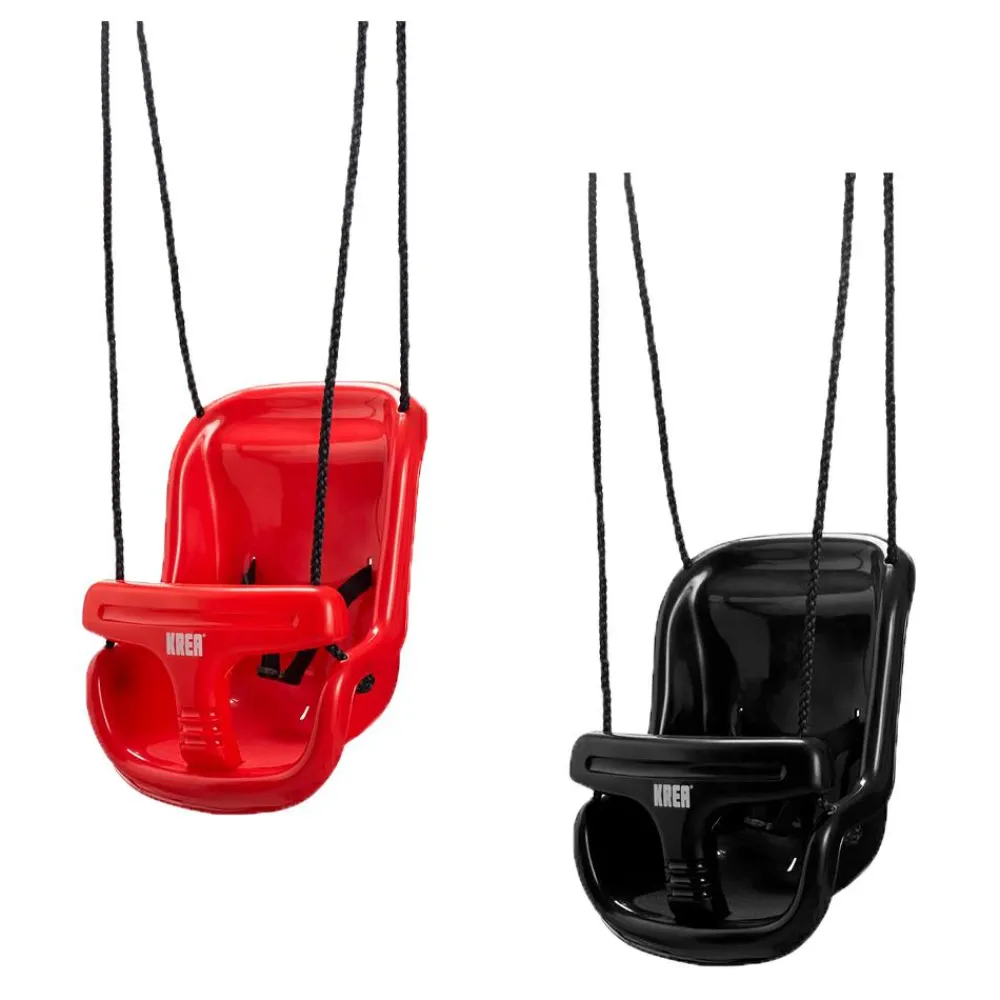 Gyngen her er udført i stødfast plast og monteret med en sele, for at sikre dit barn under gyngeturen.