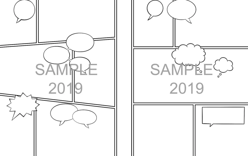 Her er hver side inddelt i felter med forskellig størrelse og talebobler.