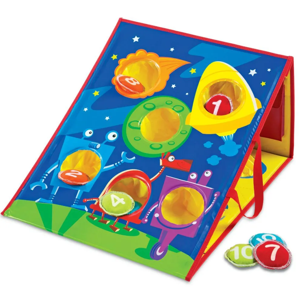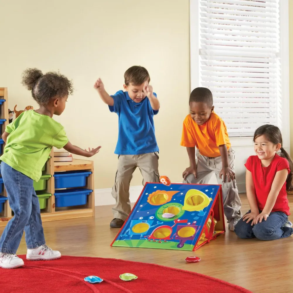 Dette kastespil har 4 forskellige målskiver og 12 ærteposer, som dit barn eller en gruppe børn kan snuppe en frisk lille kaste-konkurrence med.