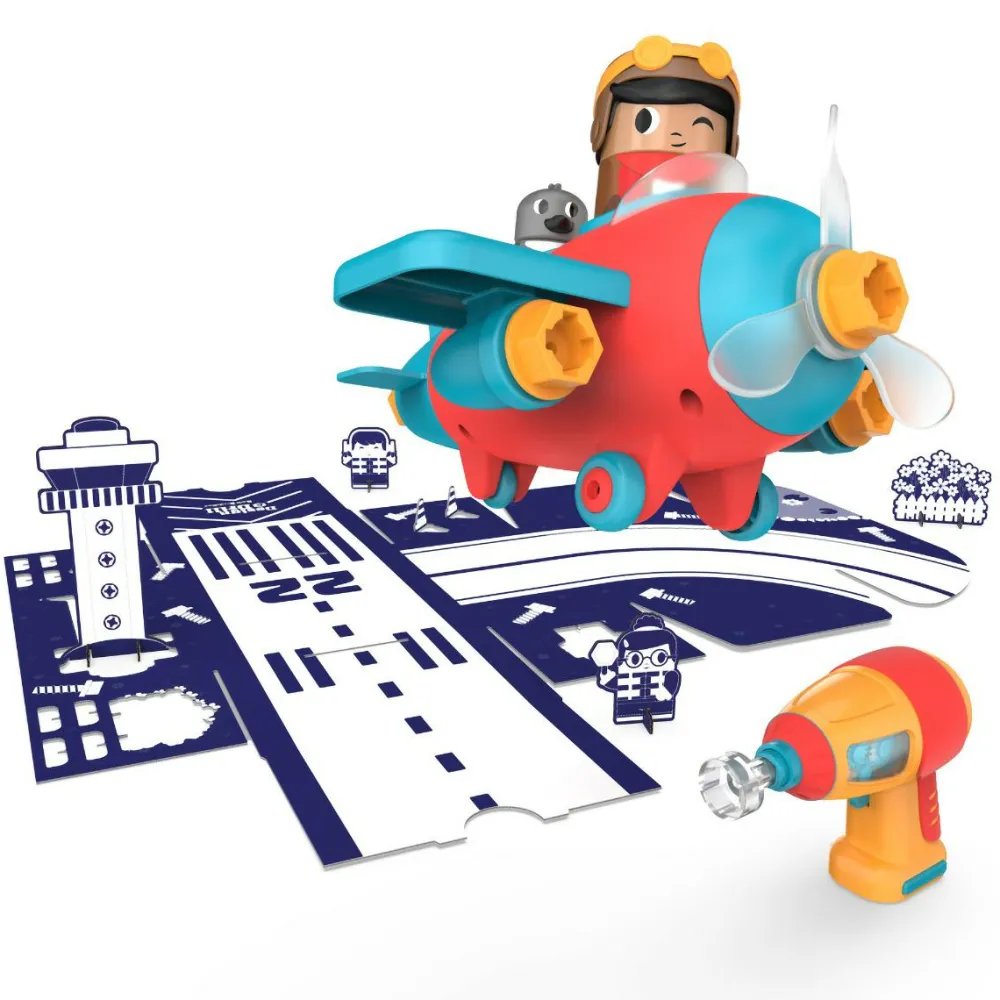 Desuden indeholder sættet 5 dele, der kan klikkes på og 7 bolte, som kan skrues fast med skruemaskinen. Der følger naturligvis også en pilot med, som har en fugle-passager.