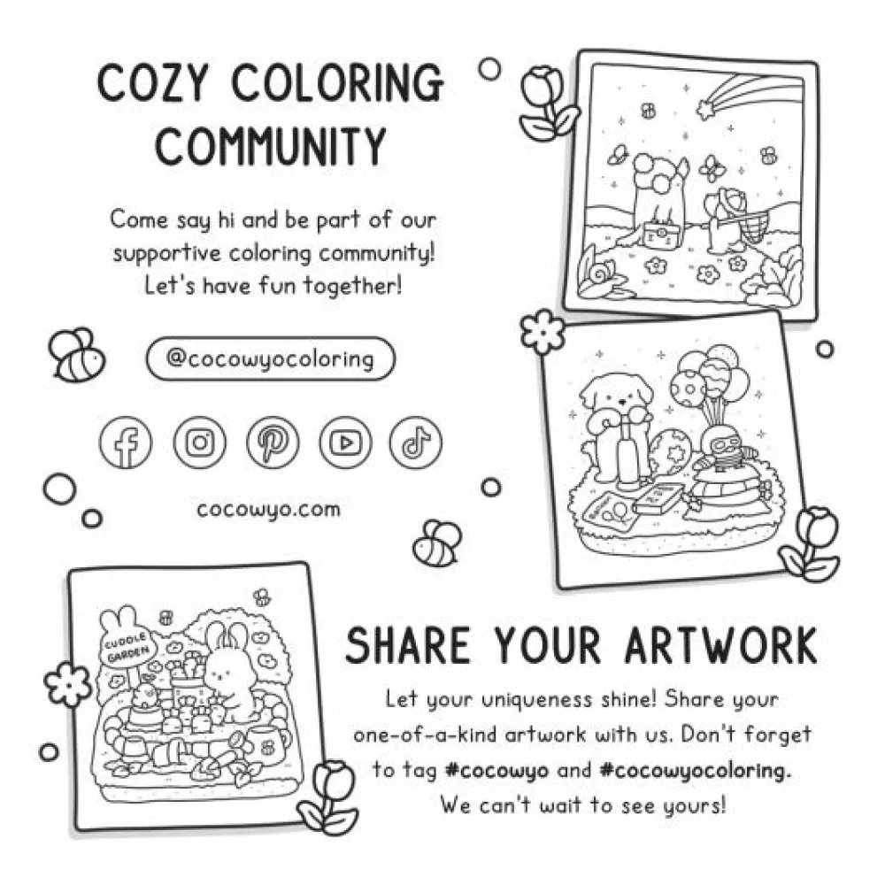 Alle de søde motiver er tegnet tydeligt op med ret brede streger, men til gengæld er der ikke ret mange små detaljer på siderne. Hvis et gardin skal være stribet eller en blomst have mange farver, så er der rig mulighed for, at man selv opfinder mønstre og dekorationer.