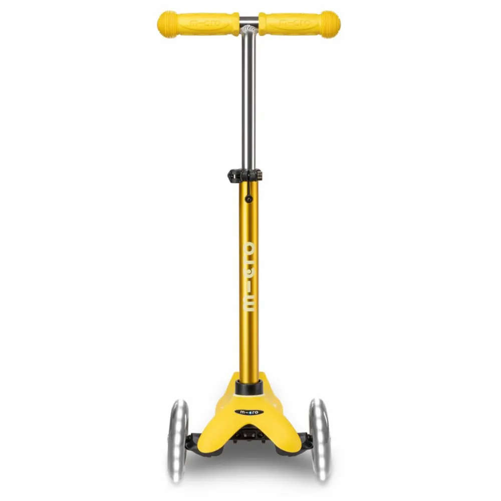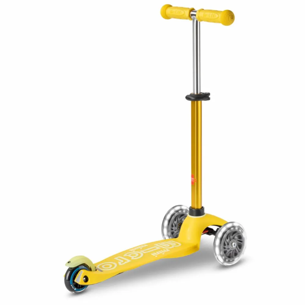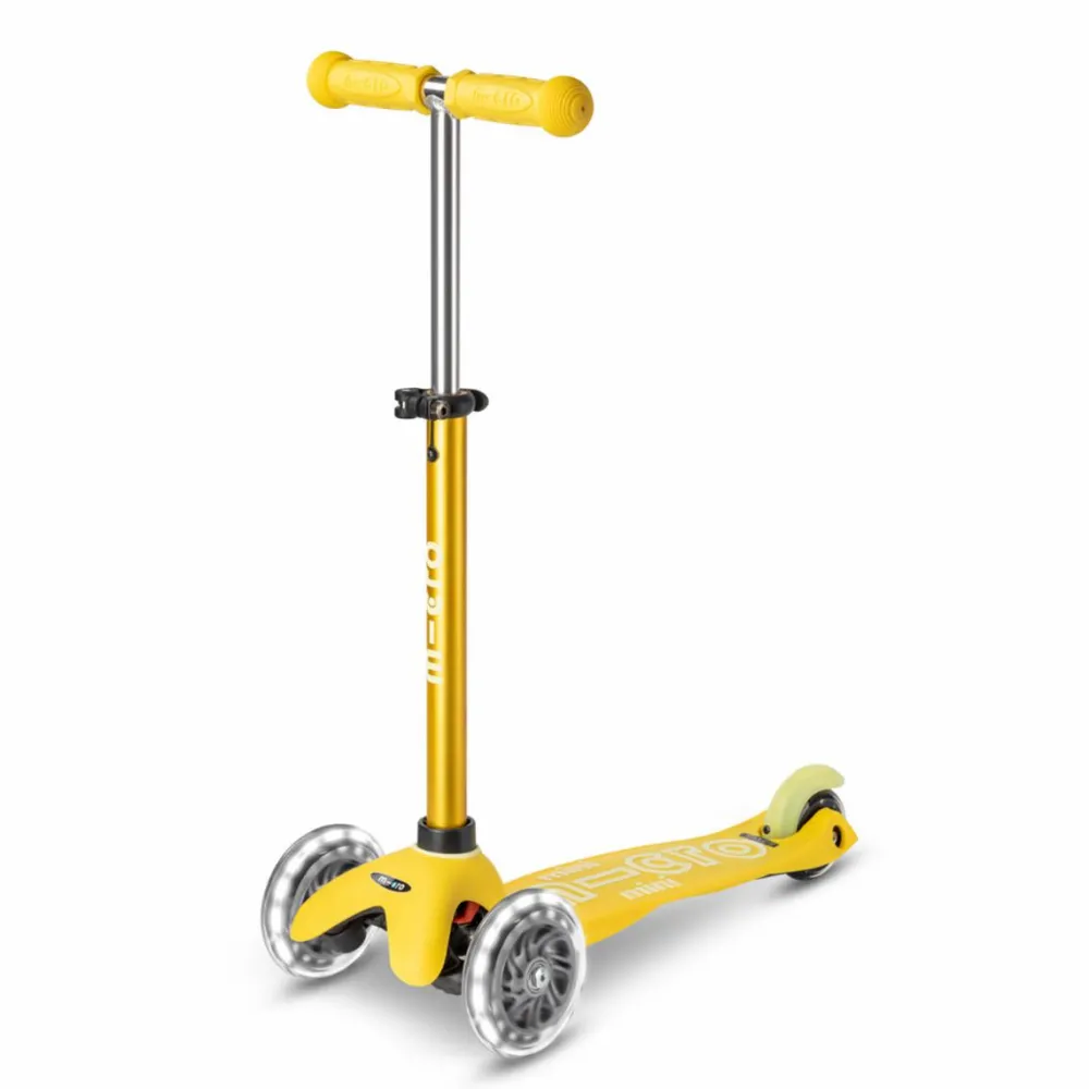 Flot gult løbehjul med dynamo-LED-lys i hjulene, der både er sjovt og giver ekstra sikkerhed i mørket.