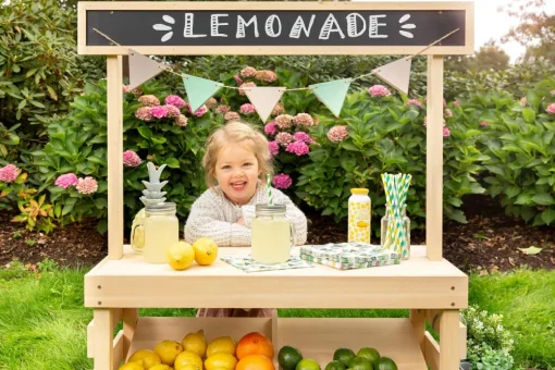Kom og køøøøb. Kunderne må straks over at se, om der er citron og sukker i lemonaden eller måske mælkebøtteblade og græsdrys. Eller måske sælger dit barn legemad, knasende sandkager, blomsterbuketter, perleplader eller måske sit gamle legetøj til vennerne.