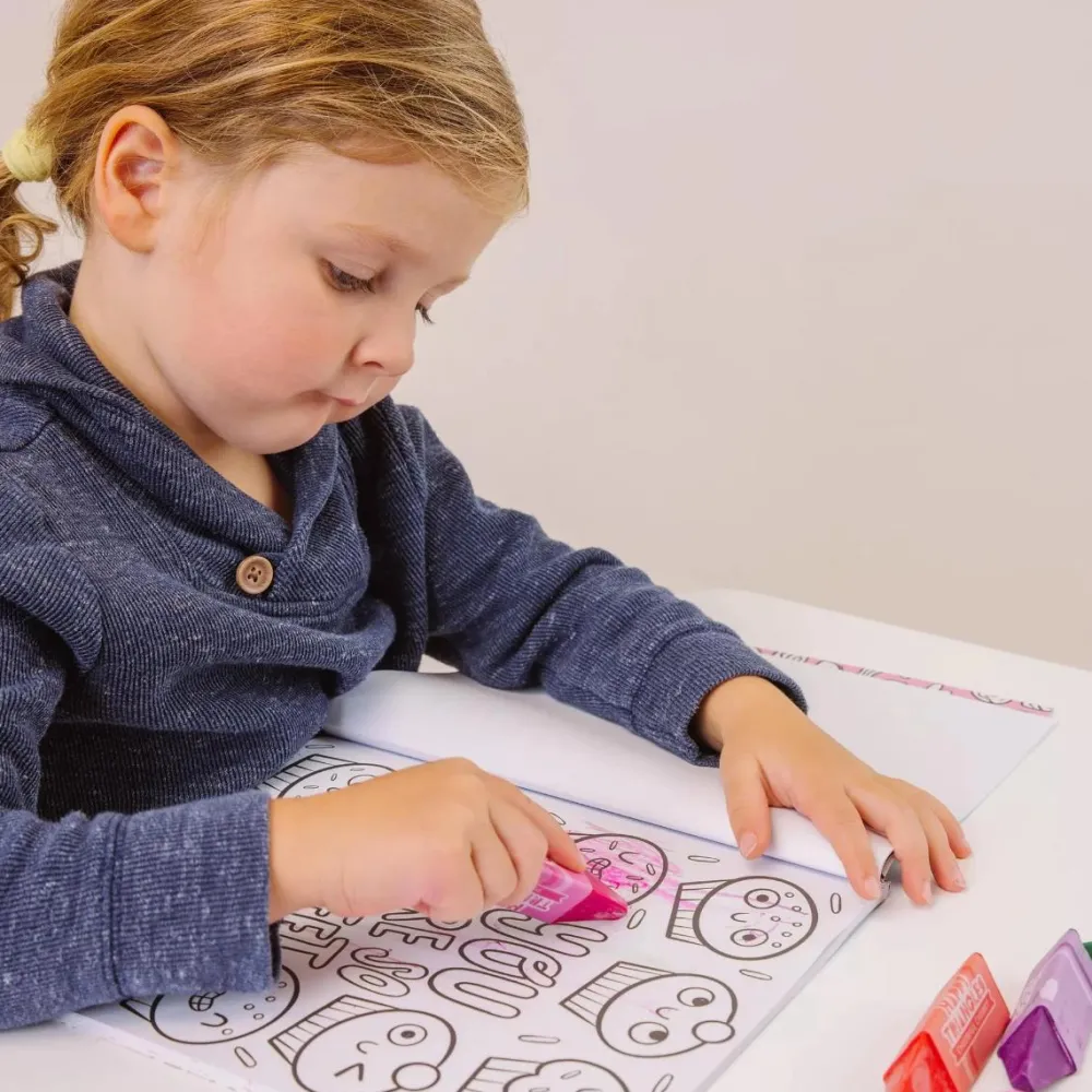 Her er malebogen – eller farvelægningsbogen er det jo – til børn, der elsker pomfritter, vandmelon, pizza, jordbær og burgers = 99 % af alle børn (i hvert fald når det gælder Legetanternes unger).