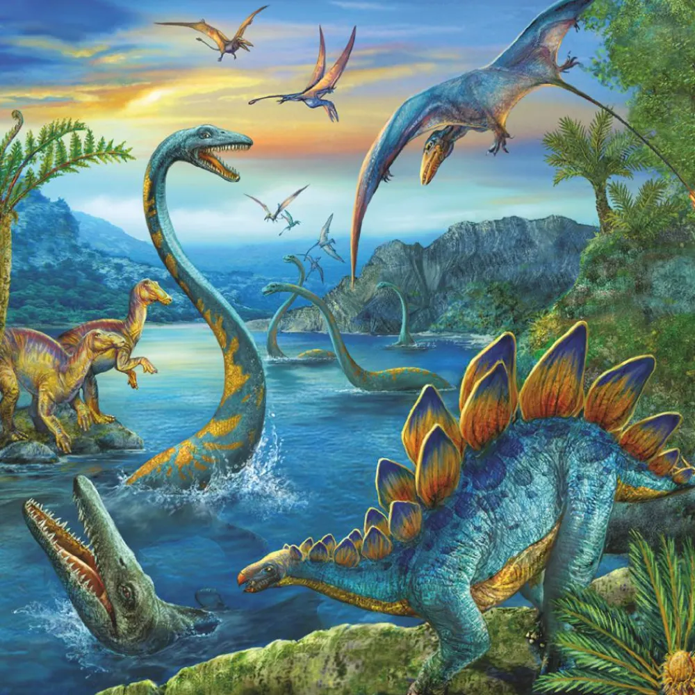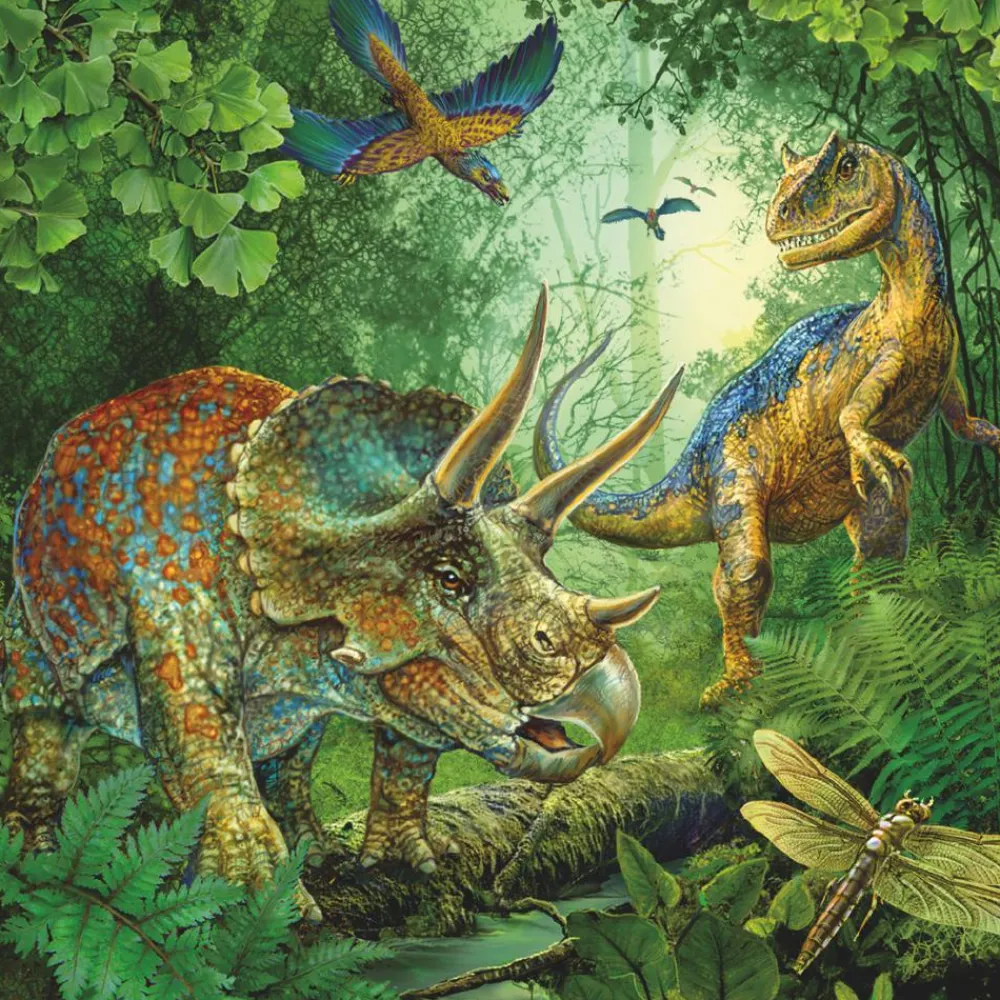 3 puslespil med flotte dinosaurmotiver og 49 brikker.