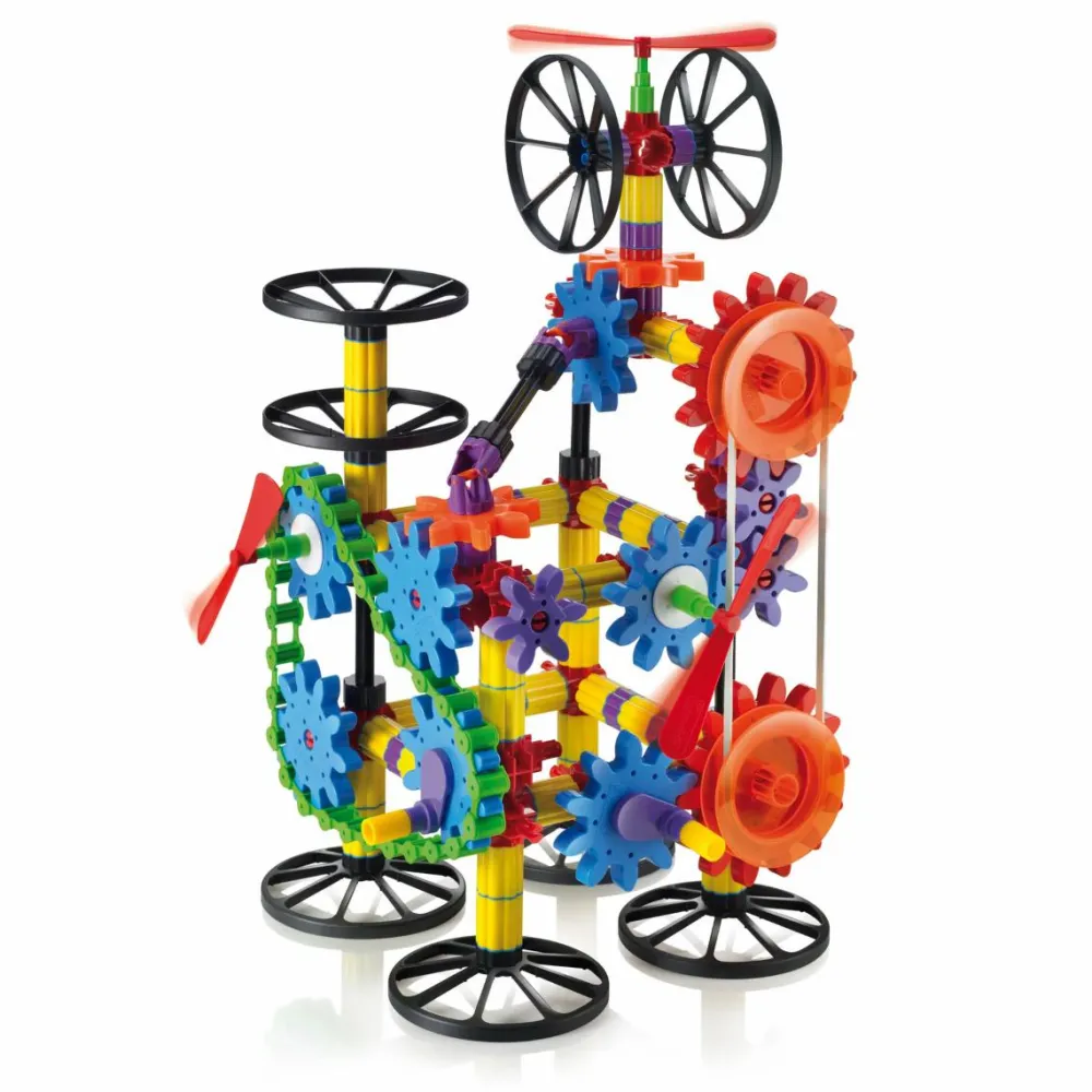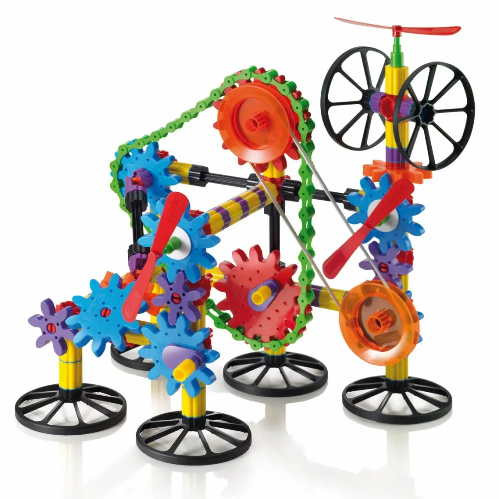 De påsatte tandhjul sætter hele konstruktionen i bevægelse med en fantastisk kædereaktion.