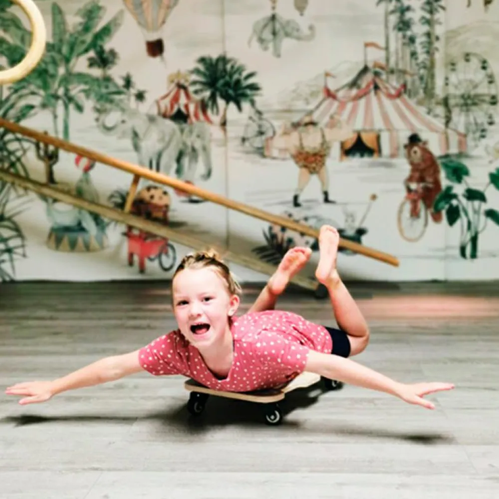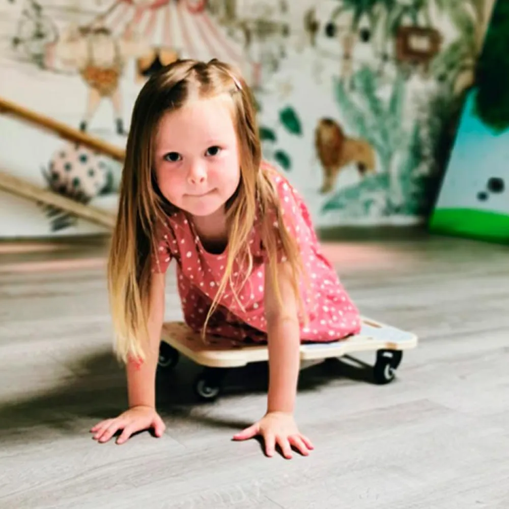 Et rullebræt giver børn mulighed for at udvikle både muskelstyrke, koordination, træne balancen og deres rum/retningsforståelse. Særligt til træning af ryg og nakke er det simpelthen genialt at ligge på maven og rulle hen af gulvet ved at skubbe med hænderne.