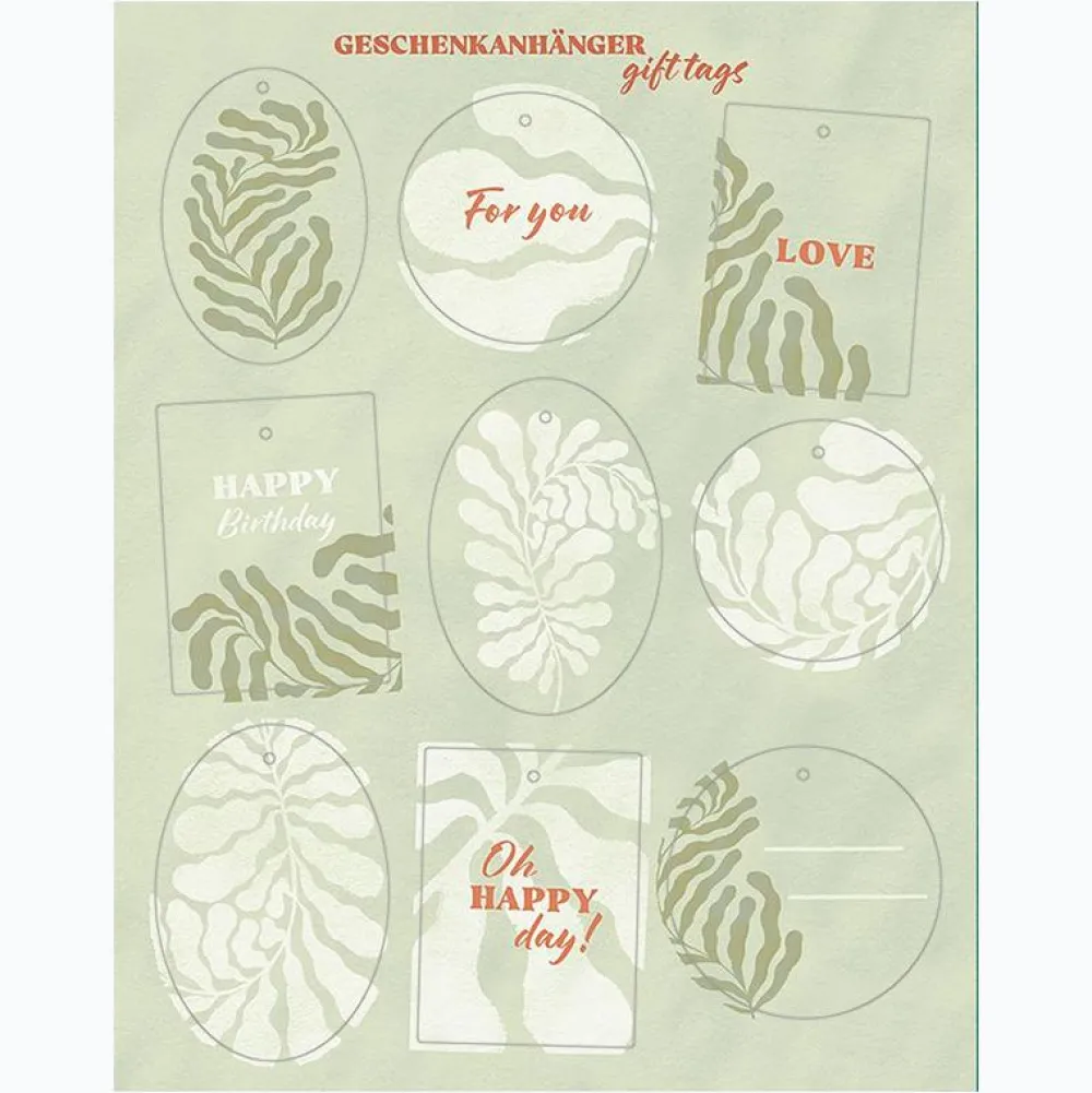 Her er 10 ark på 50 x 70 cm tykt og lækkert designet gavepapir med fine tryk samlet i en bog med tilhørende til-og-fra-mærker.