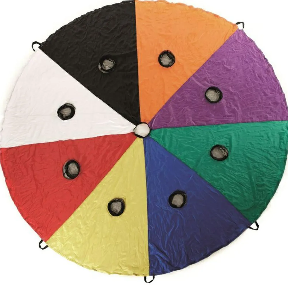 I faldskærmen er der også huller med net i, så I kan kaste til måls med fx ærteposer.