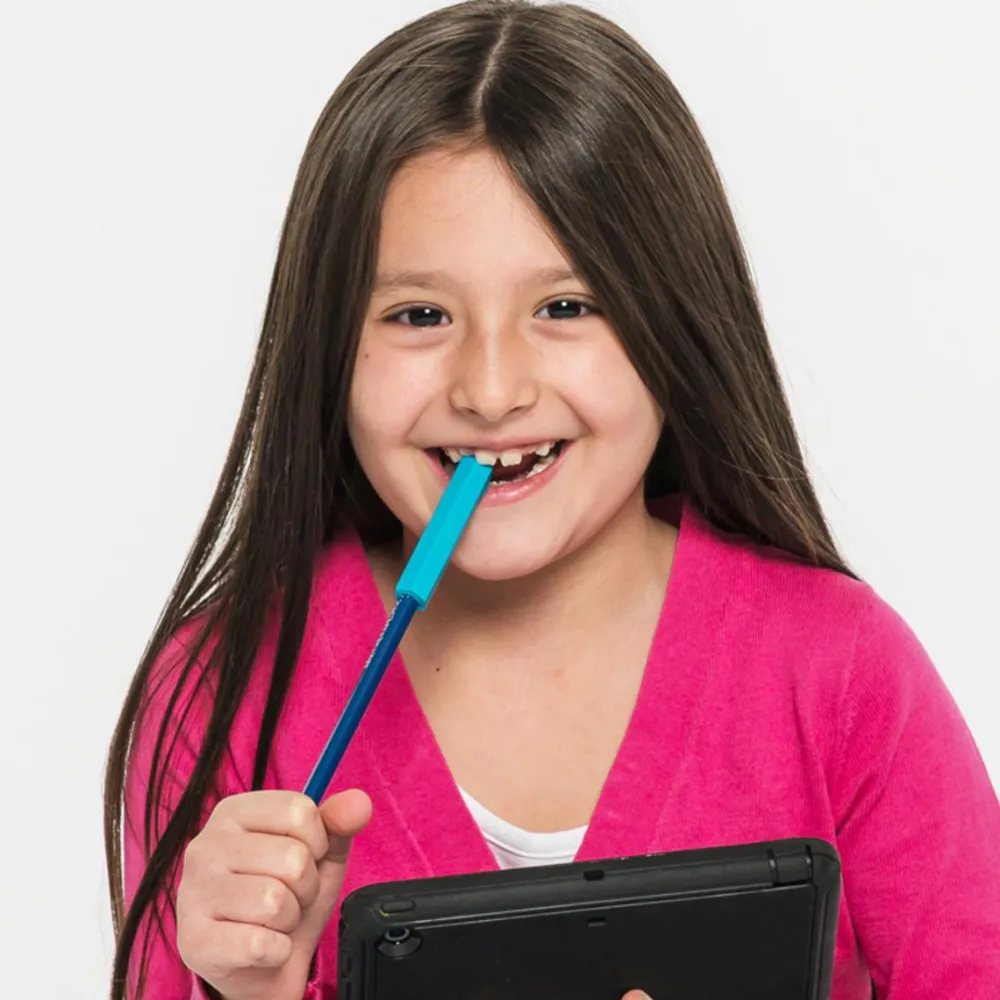 Hvis du ofte skal fiske gennemgnaskede blyanter og kuglepenne op af dit barns penalhus, så kan du nu købe en Krybto-Bite tyggetop i stedet for. Den er lige til at smutte på dit barns blyanter.