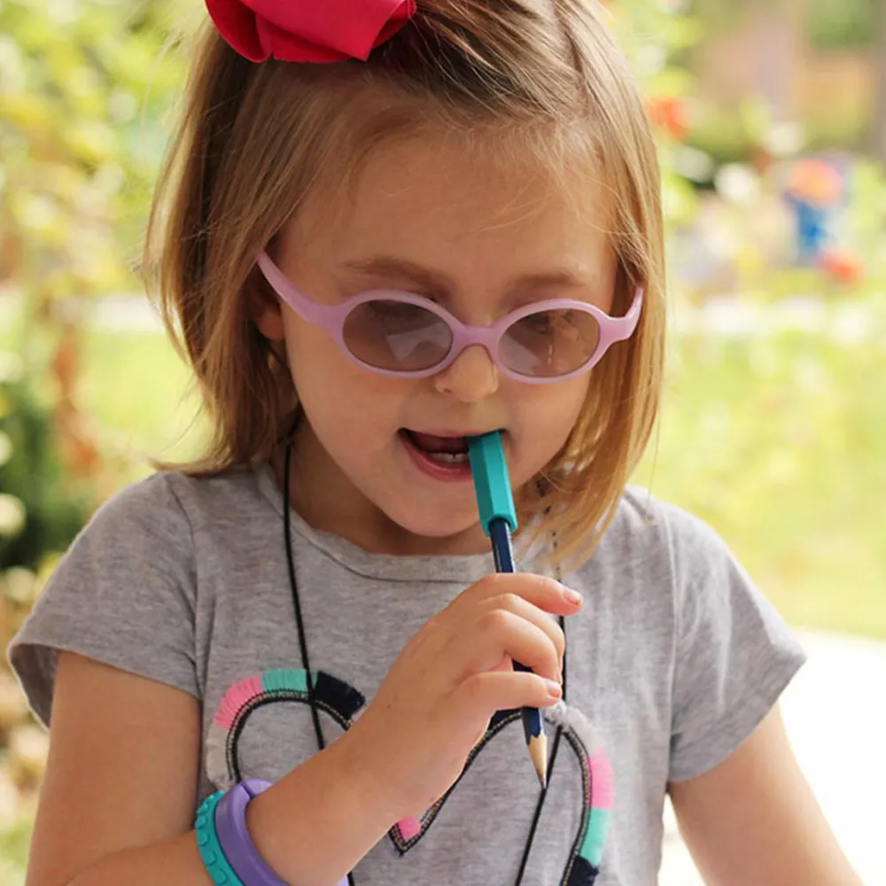Sensoriske tyggeredskaber er en fællesbetegnelse for bidesmykker, bidelegetøj og tyggehalskæder og vibrerende redskaber til børn, der har så stærk trang til at tygge i noget, at der skal særlige redskaber til. Nogle børn sutter, tygger og gumler for at berolige nervesystemet via de mange såkaldte receptorer i tandrødderne og i mundhulen. Det er ikke farligt, men hvis du gerne vil skåne puder, blyanter og bluseærmer, så er et sensorisk tyggeredskab en god ide. Vores tyggeredskaber er sikre at anvende og hygiejniske.