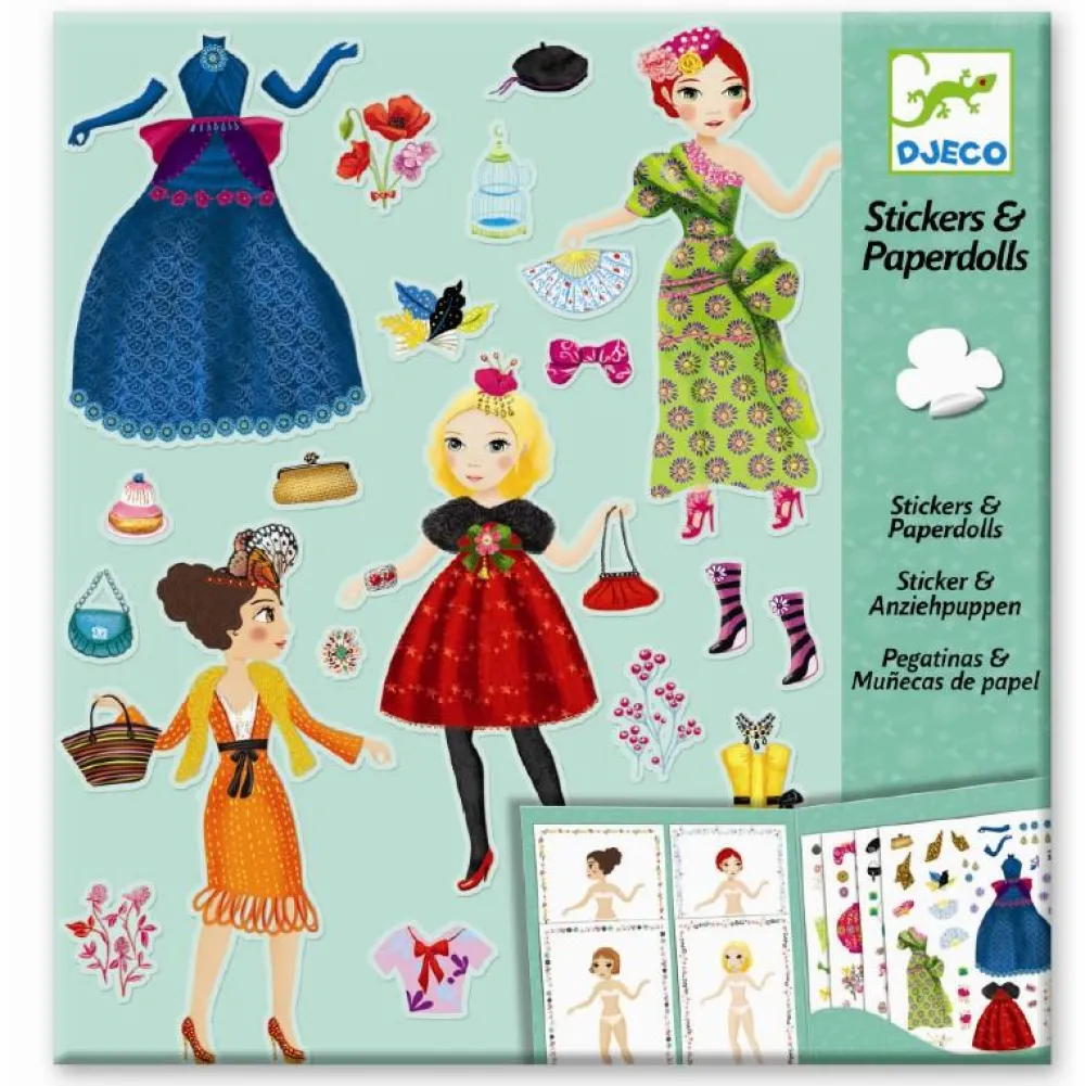 Påklædningsdukker som dit barn kan give klistermærketøj og tilbehør på. Klistermærkerne kan bruges igen og igen, så dukkerne kan skifte stil, plukke en buket blomster eller tage til fest.
