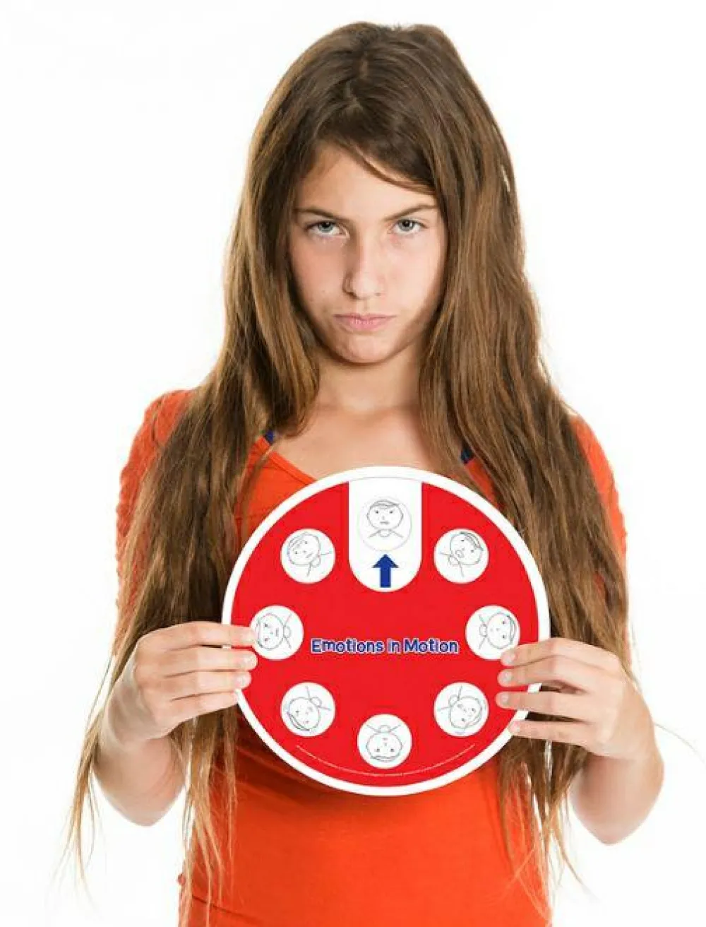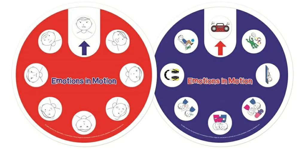 Dette hjul er overraskende enkelt, men meget effektivt. Det er ingen ord, kun illustrationer. Det er barnets egen fortolkning af ansigtsmimikken, der er i fokus.