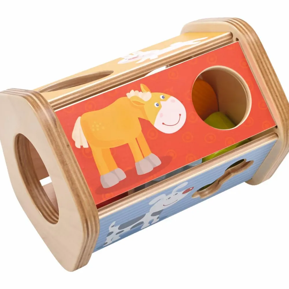 Hyggelig og lærerig puttekasse af robust træ – kan gå i arv til flere tumlinger.
