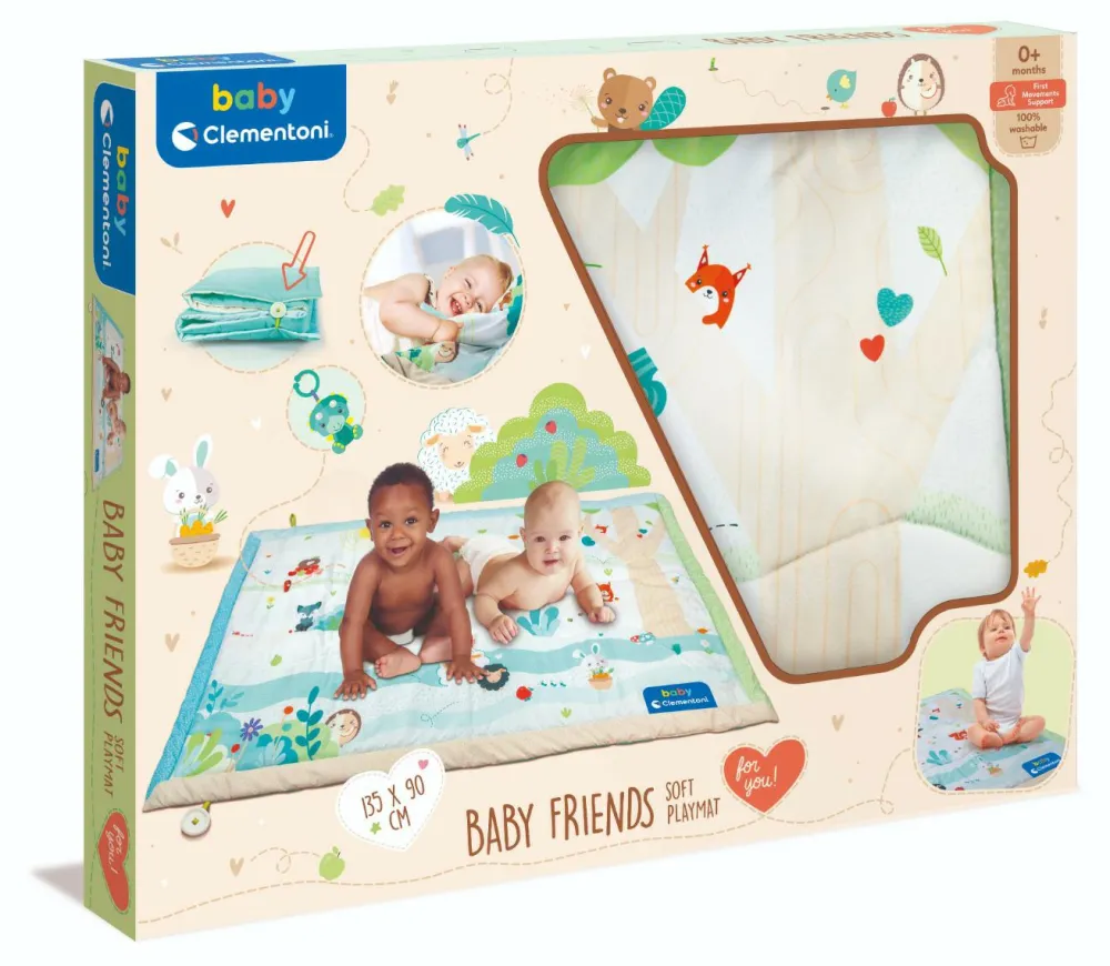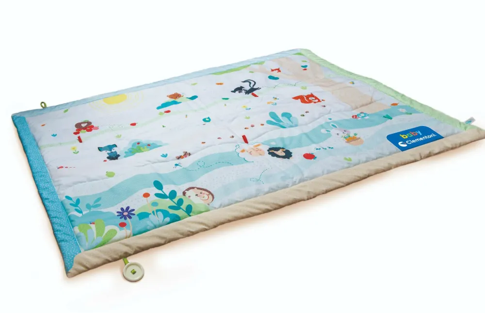 Dejligt, blødt legetæppe med søde motiver fra skoven til de mindste. Tæppet er uden legetøj, og det kan rulles sammen og lukkes med en knap.