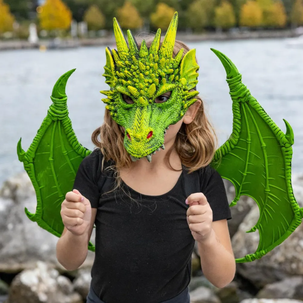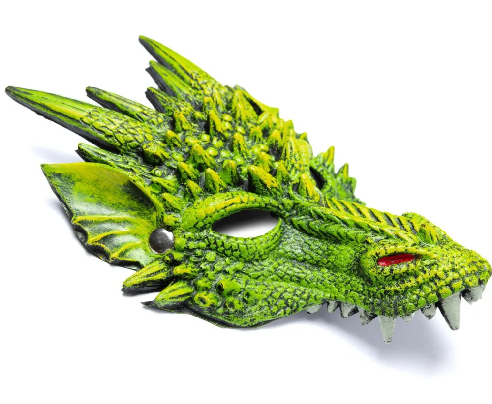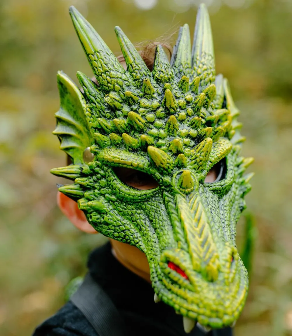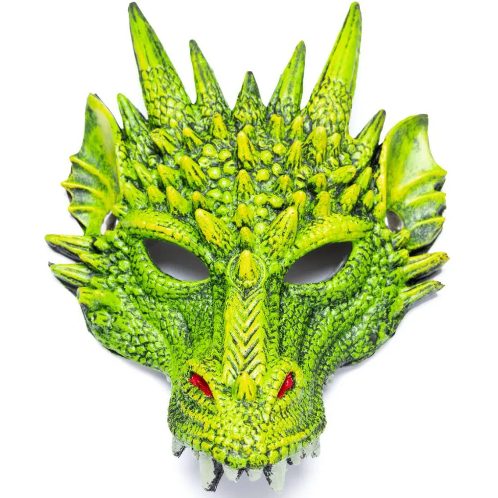 Uhyggeligt flot dragemaske af skum med gummi udenpå, så den virker helt ægte og både er behagelig at have på og kan holde til at blive brugt.
