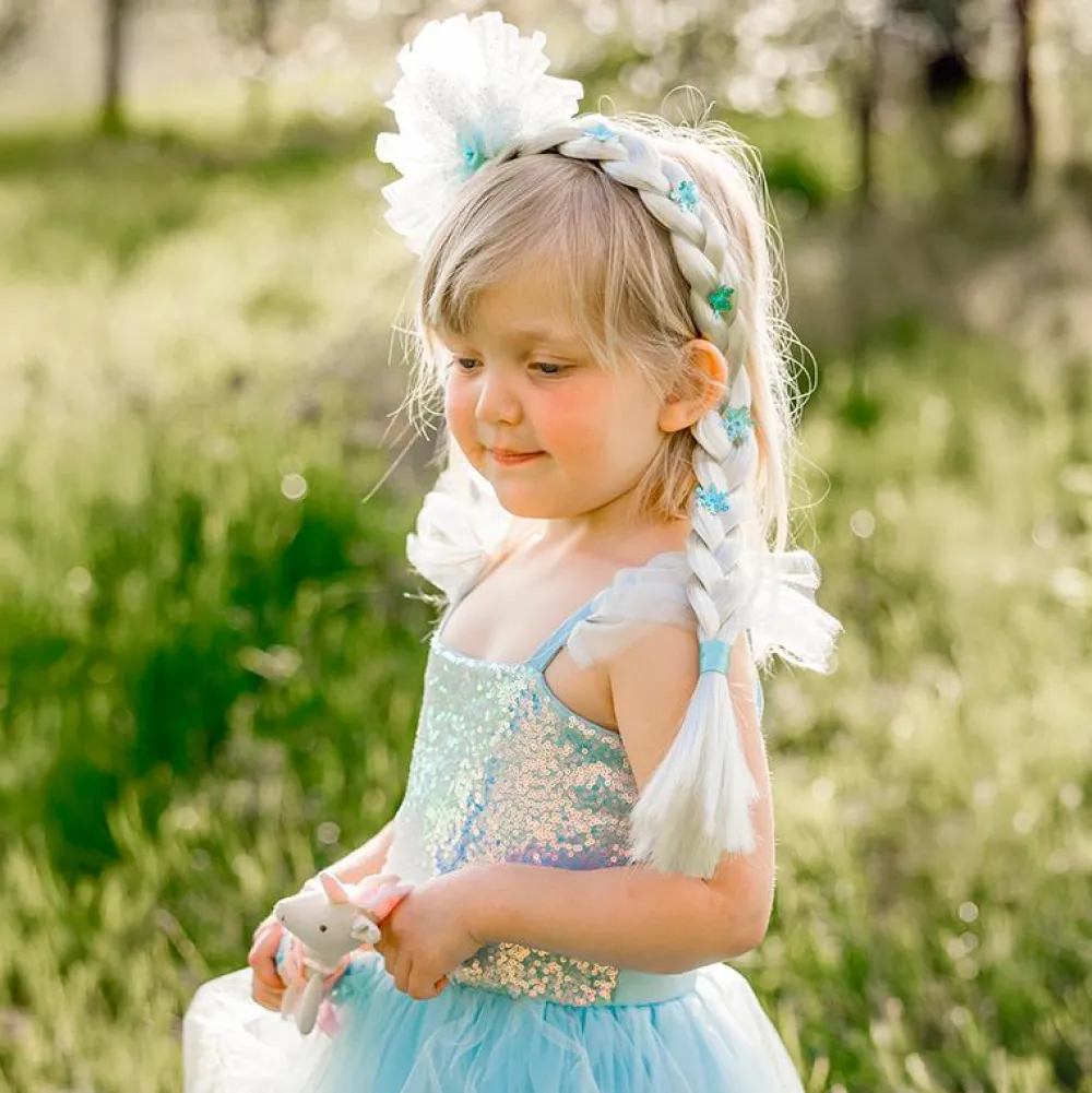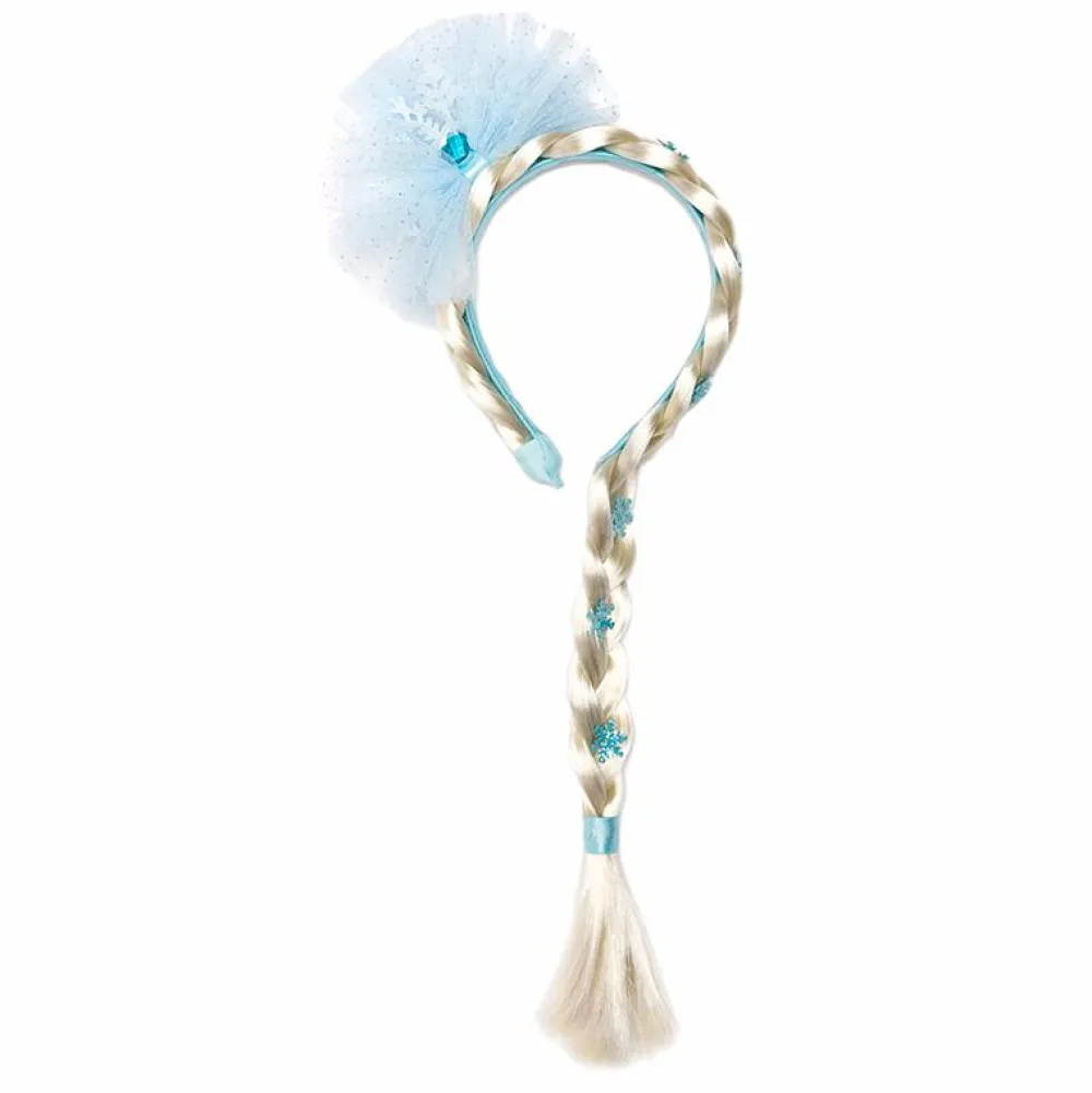 Hårbøjle med den fineste isprinsesse-fletning med snefnug ned langs fletningen og tyl-pynt på toppen.