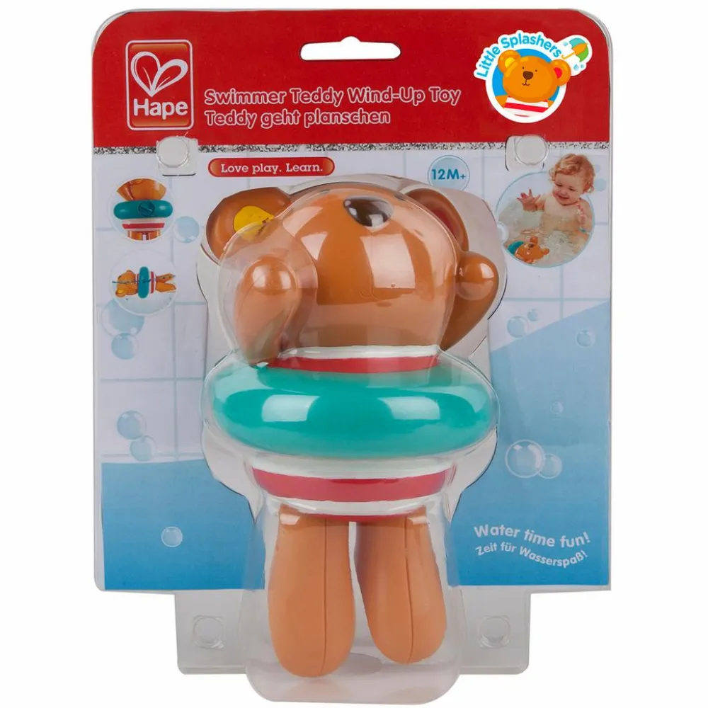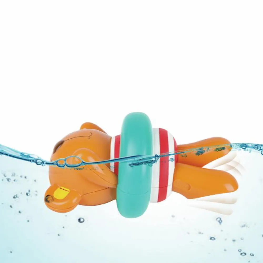 Teddy er et helt klassisk badelegetøj, der svømmer af hjertens lyst, når han bliver trukket op bagpå.