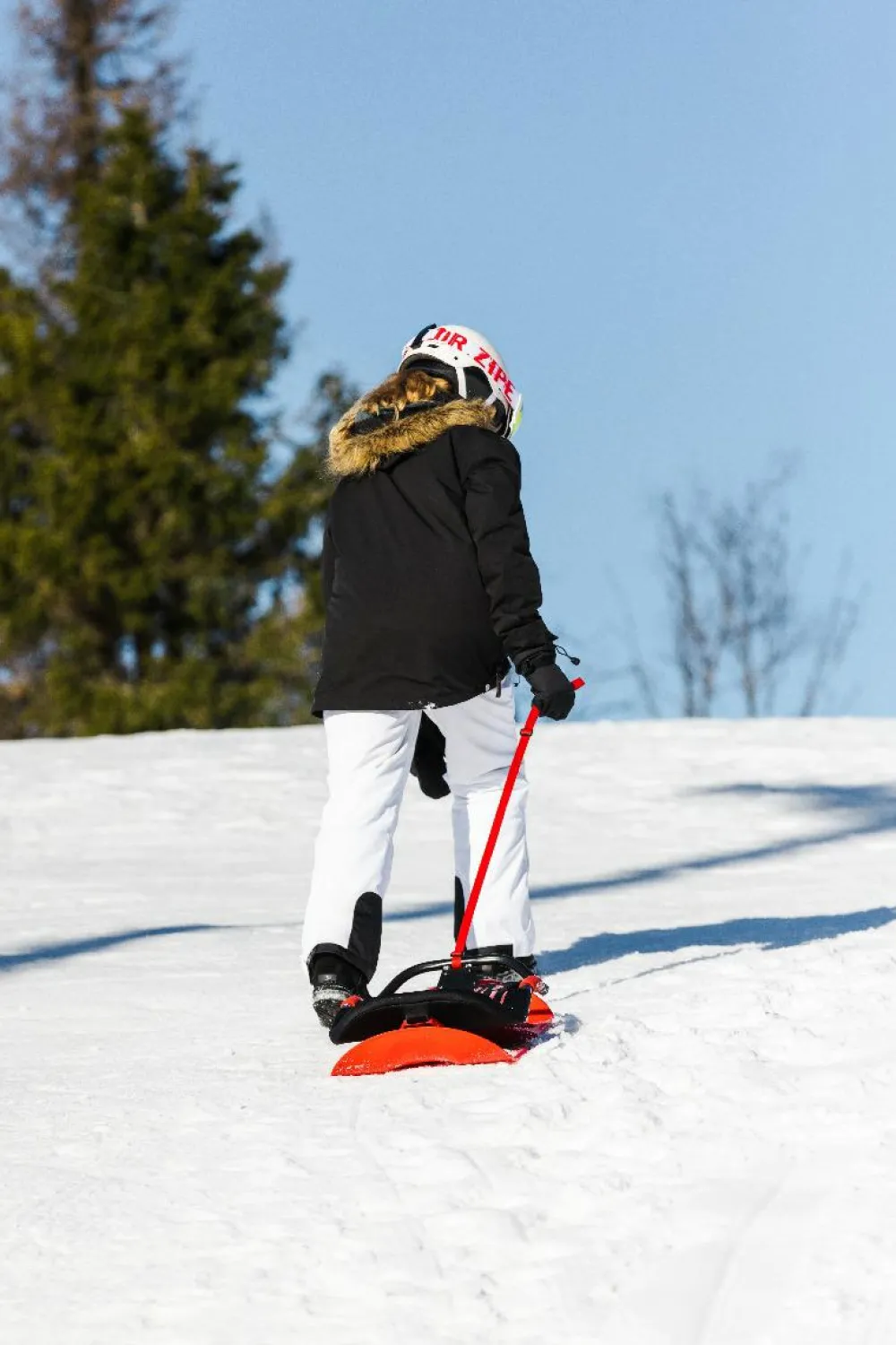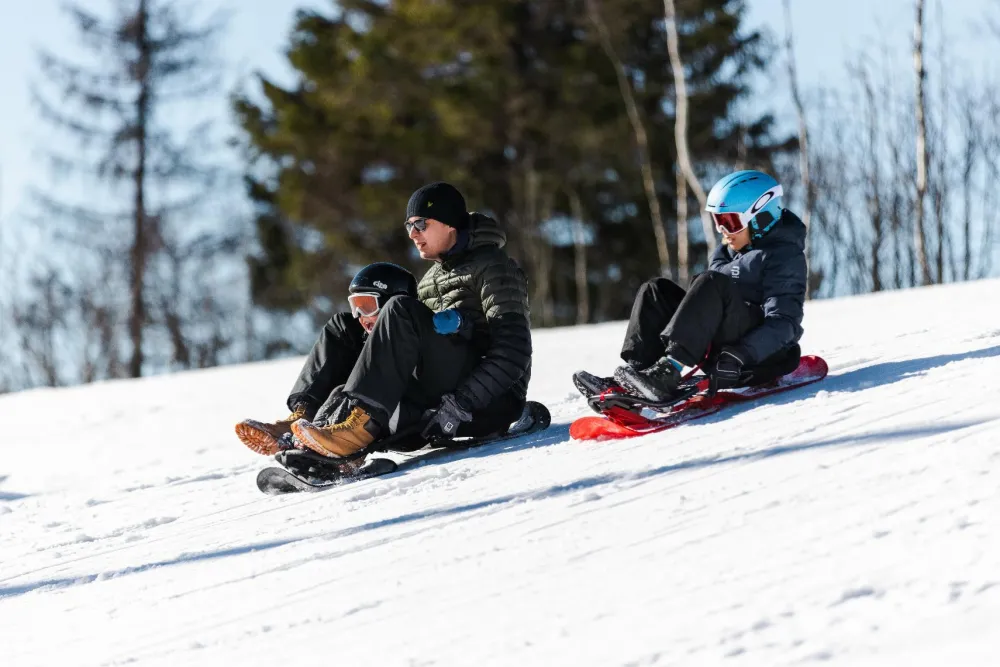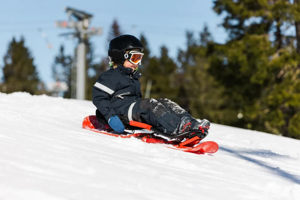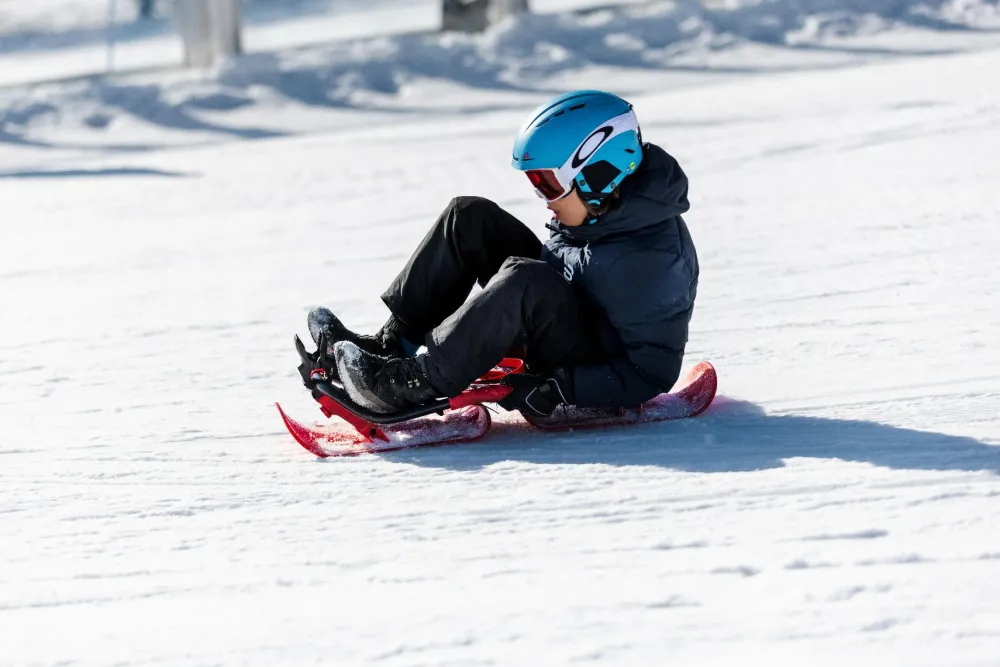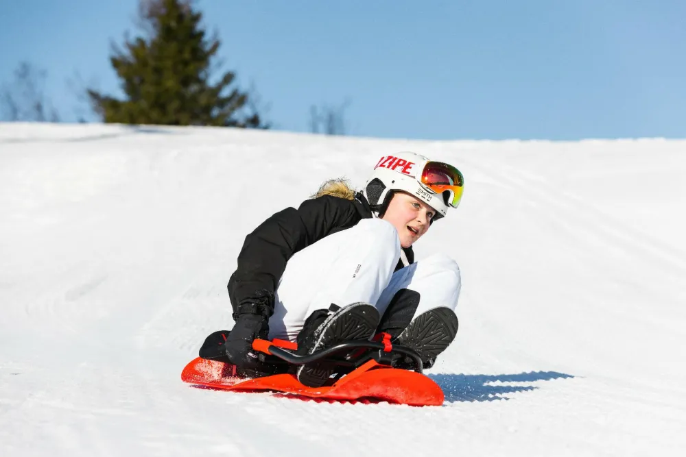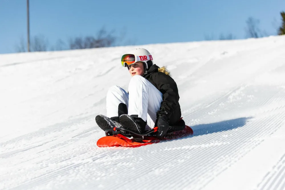 Du styrer retningen på kælketuren ved at brug din vægt og balance og læne dig lidt eller meget til siderne. Det er ret intuitivt – og super sjovt.