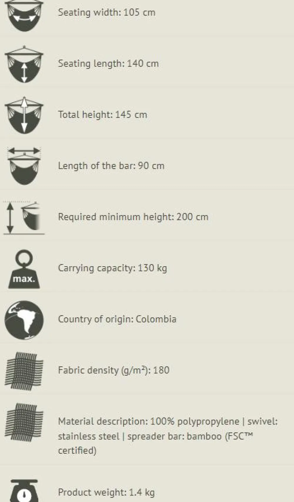 La Siesta er en tysk familievirksomhed, som i årevis har samarbejdet med lokale producenter og råvareleverandører i Columbia om at producere hængekøjer og hængekøjestole i god kvalitet med social ansvarlighed og bæredygtig tankegang.