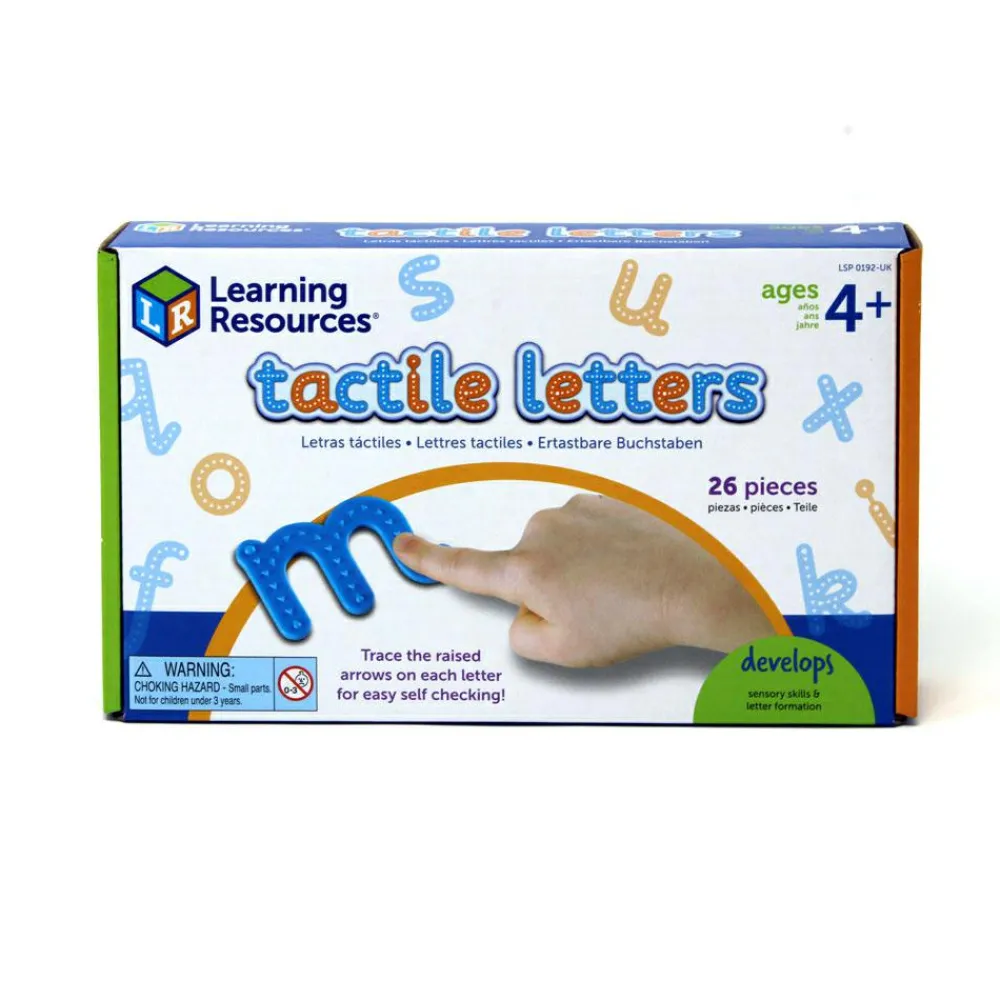 Fine bogstaver fra det engelske alfabet med noprede overflader, så dit barns følesans bliver inddraget i at lære bogstaverne.