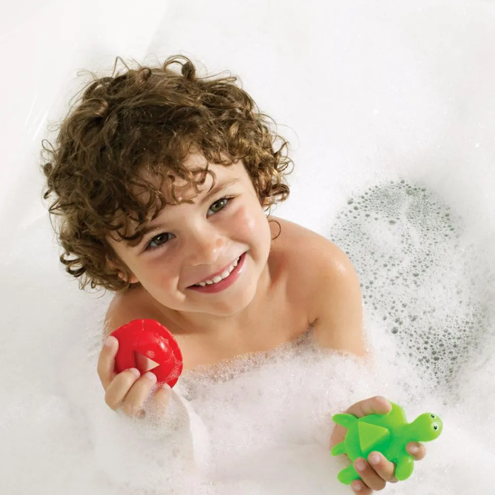 Skildpadderne nyder en tur i vandet, så tag dem gerne med til underholdning i badet.