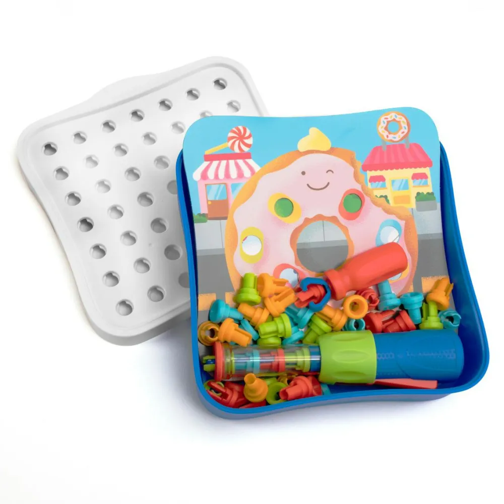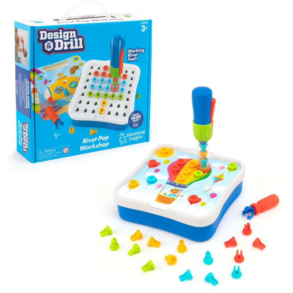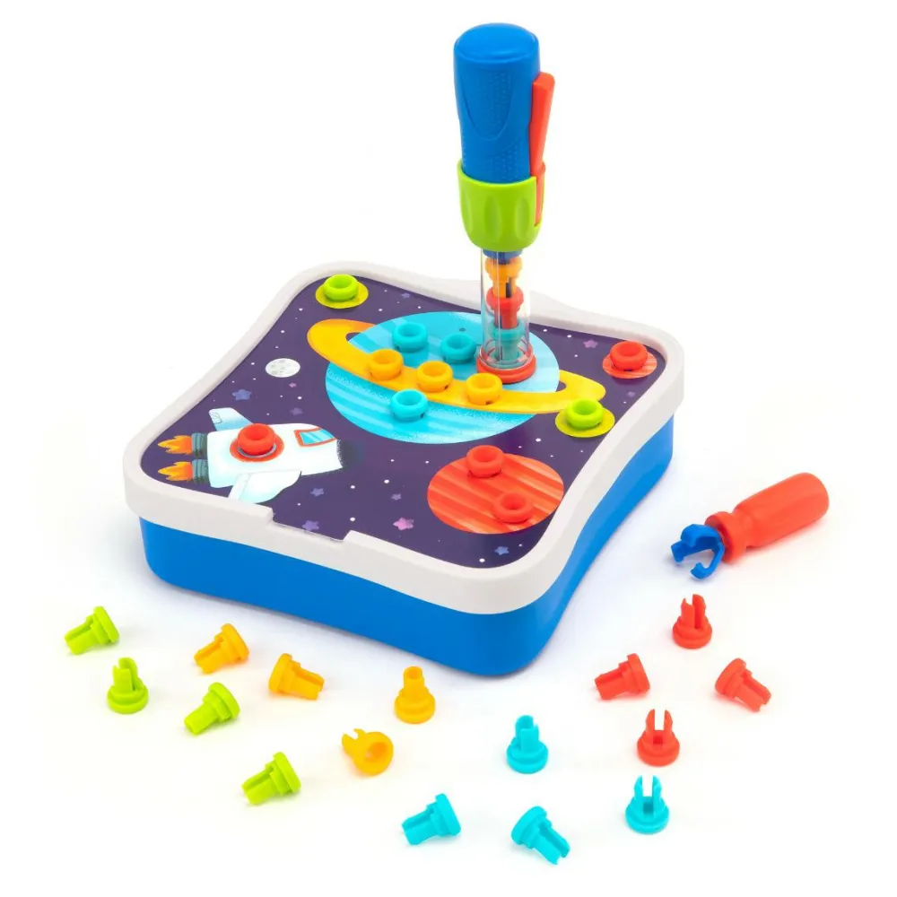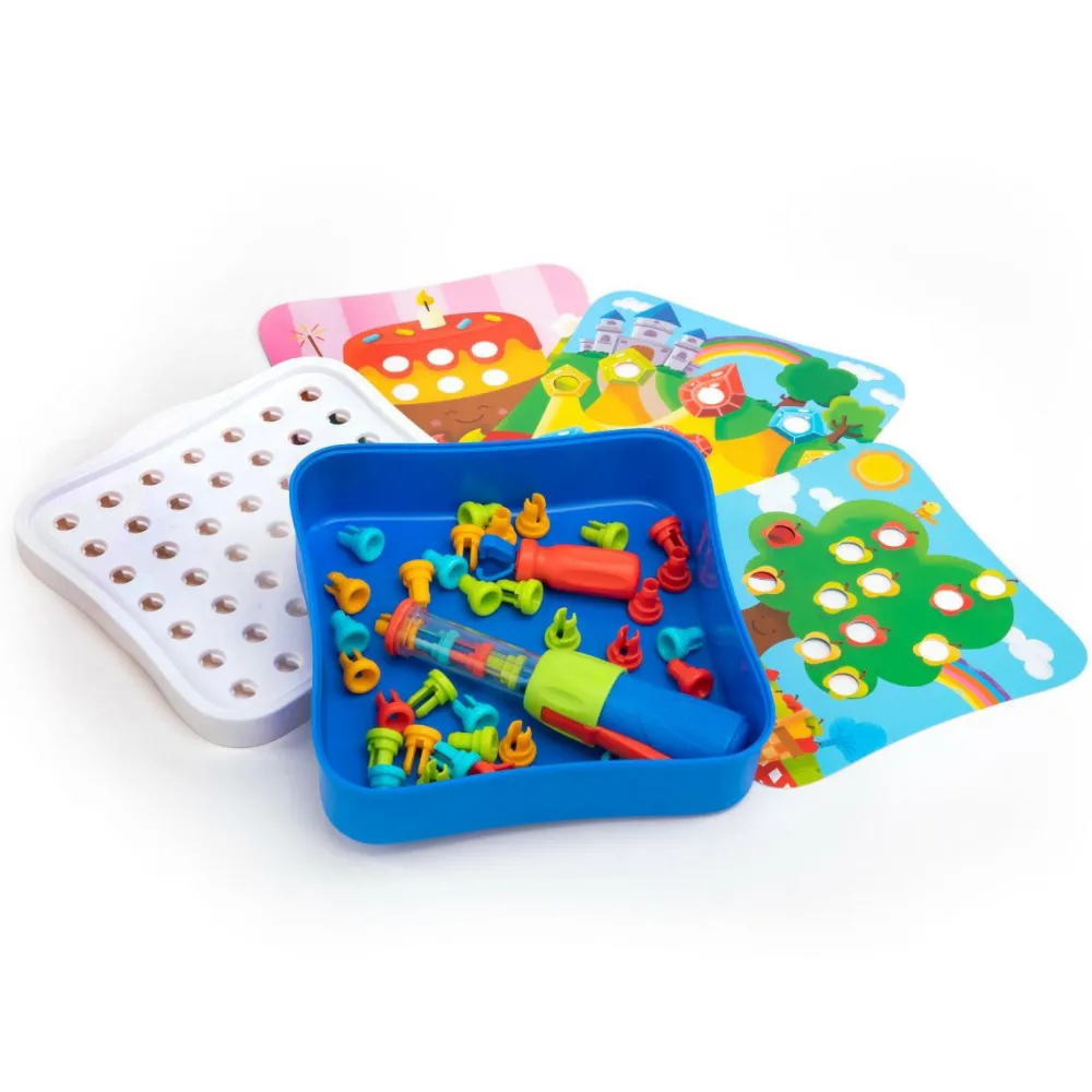 Savner du at have fjernbetjening, hårspænder, køleskabsmagneter og nøgler for dig selv? Så er skrue-dimse-pille-legetøj som dette en herlig gave til dit barn. Legen kan få dit barn til at føle sig dygtig til at dimse. Og det kan give dit barn et større mod på at kaste sig ud i nye udfordringer.
