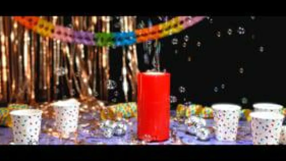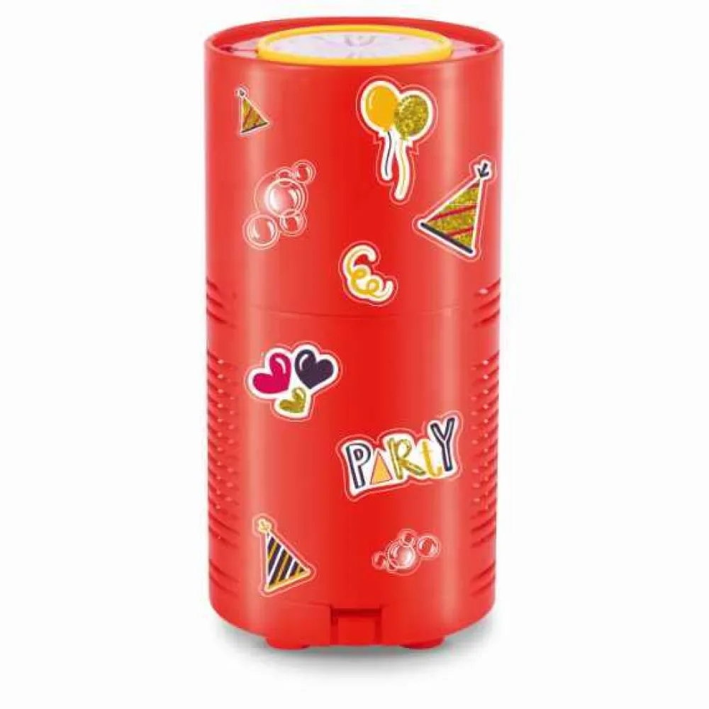 Når du tænder den, bobler der sæbebobler ud foroven, mens LED-lys sørger for en ekstra festlig stemning.