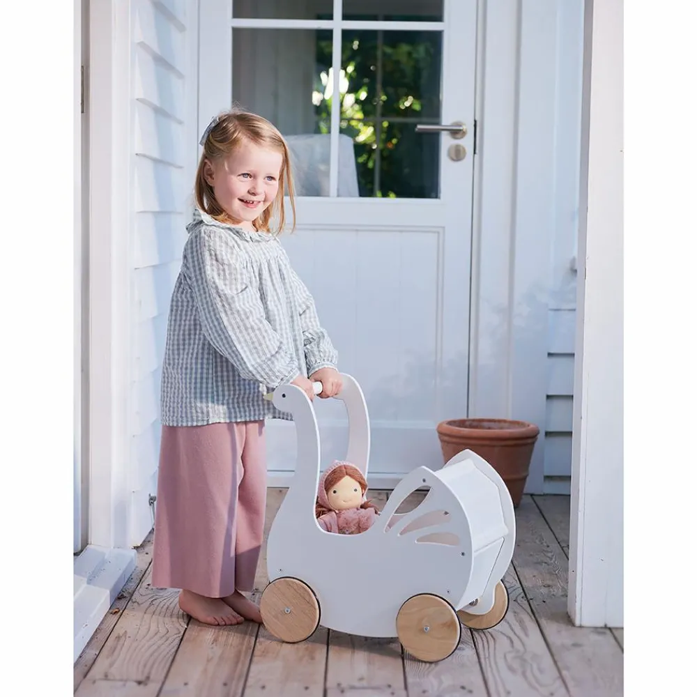 Meget fin svane-dukkevogn inkl pude og lille dyne.