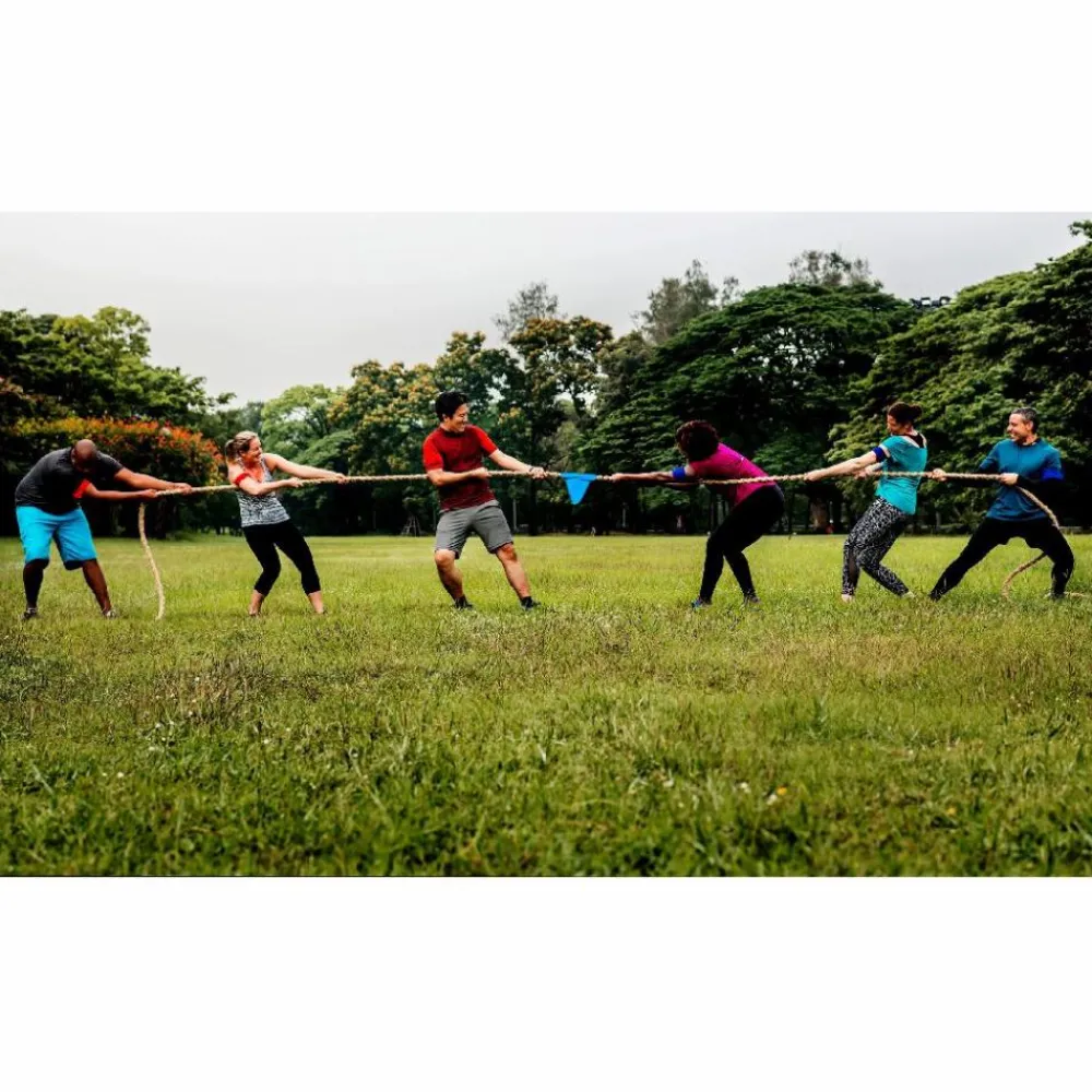Man kan sagtens bruge et almindeligt reb til tovtrækningskonkurrencer. Men hvis du alligevel vil have et reb at dyste med, kan du jo lige så godt gå efter et tovtrækningsreb med fint markeringsflag på midten, så det er tydeligt at se, hvem der fører undervejs.
