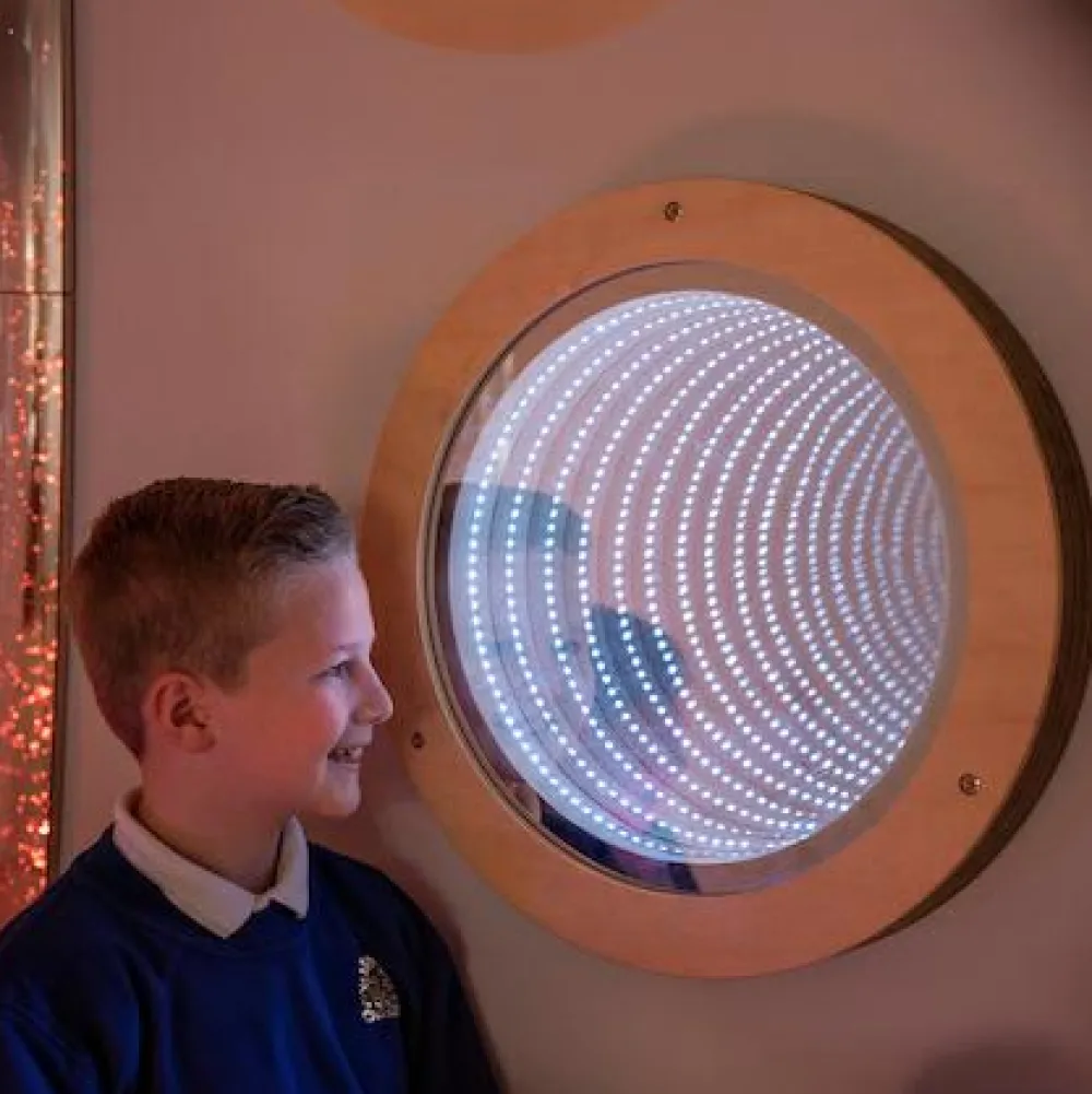 Dette spejl er designet til at blive hængt på væggen og skabe en fantastisk effekt i institutionen eller i et sansehjørne i dit hjem.