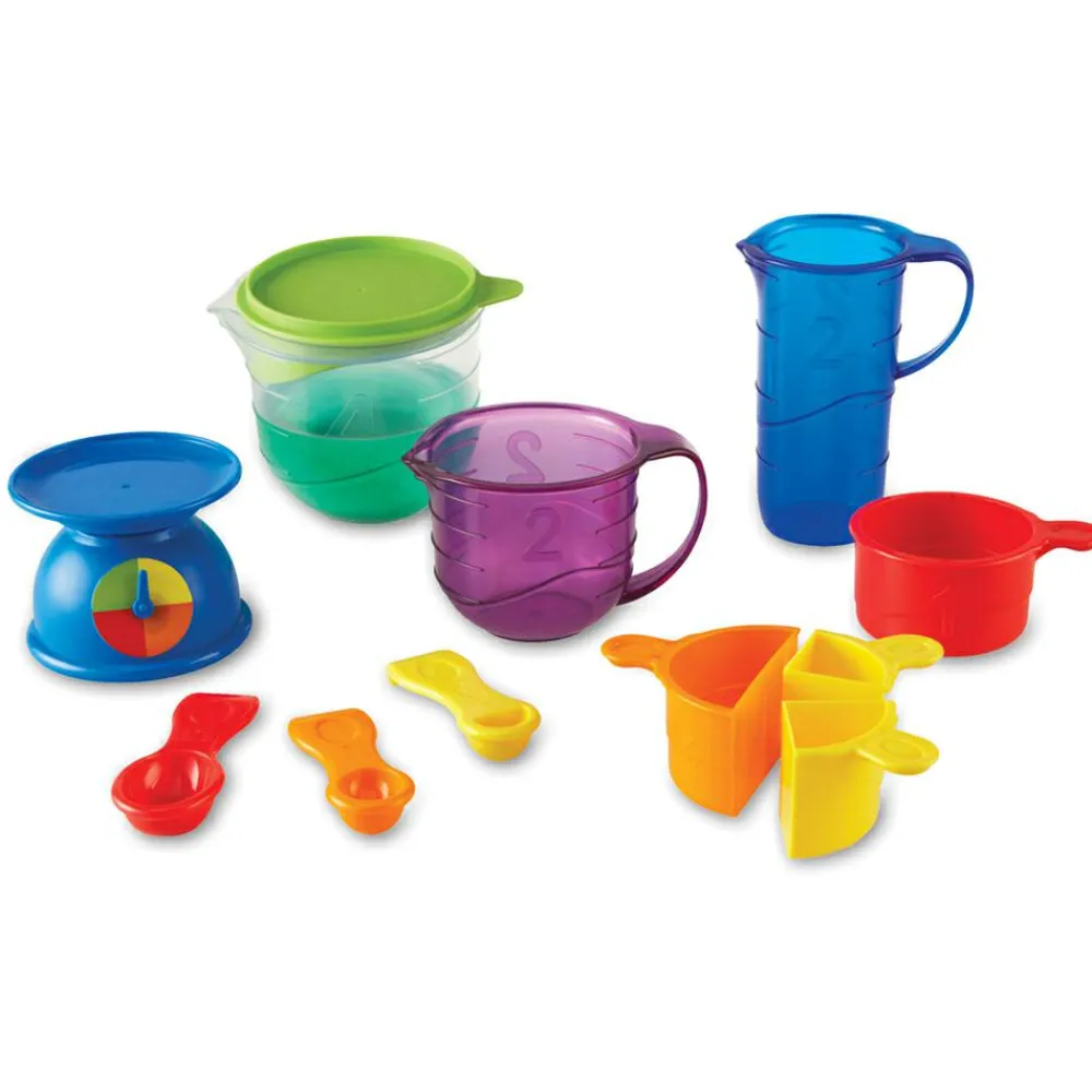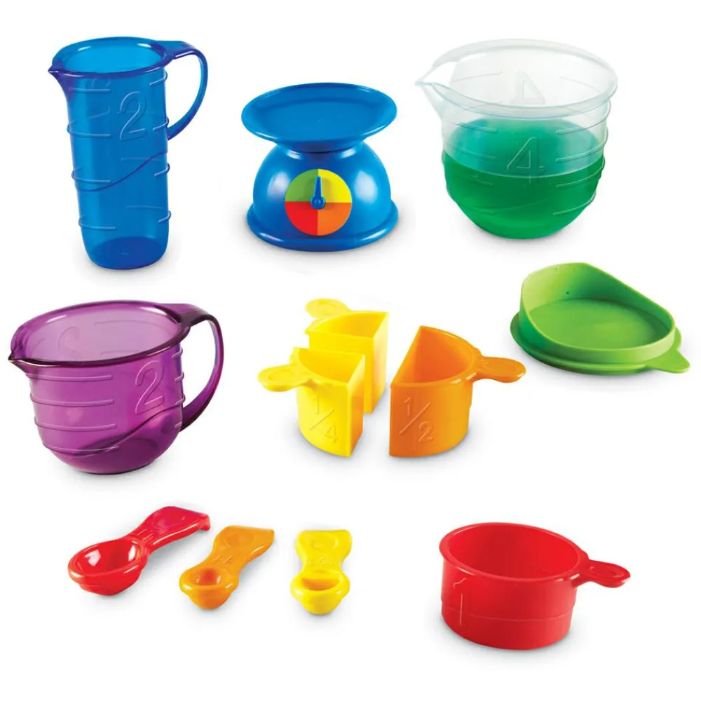 Sættet indeholder: Vægt, målebægre, skål, måleskeer samt 10 aktivitetskort.