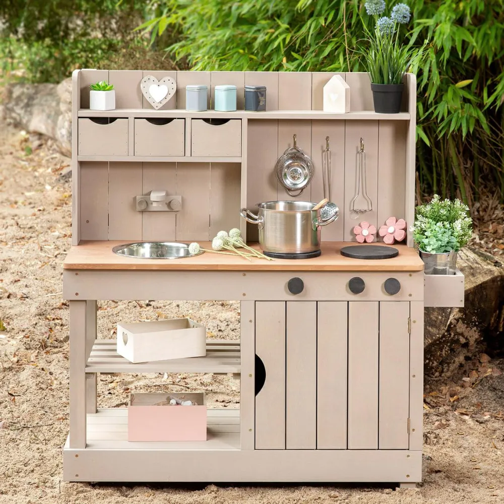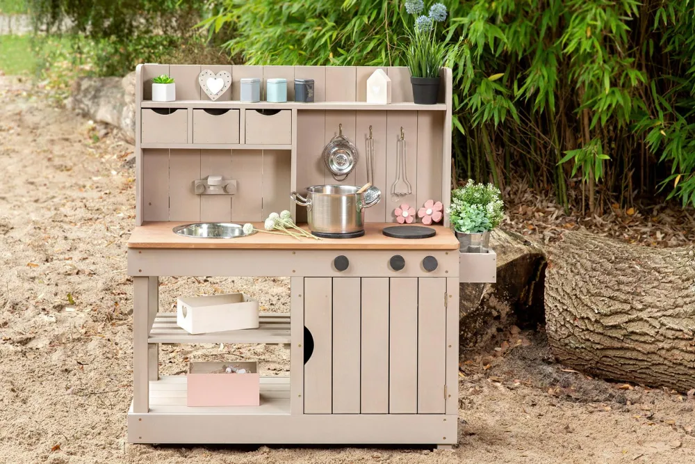 Det skønneste udelegskøkken med et væld af muligheder for at fremstille sneglesuppe, pløregullash, mælkebøttecookies og smoothies med kompostorm og grusdrys.