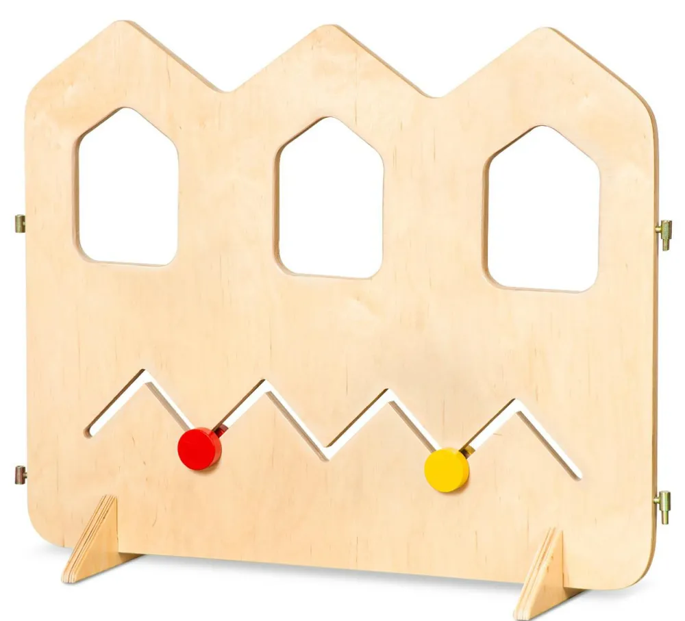 Afskærmningsmodul, hvor flere kan sættes sammen og skabe en opdeling af et rum. Samtidig med at modulet fungerer som afskærmning, er der forskellige aktiviteter på hvert modul, som er udviklende og underholdende for dit barn.
